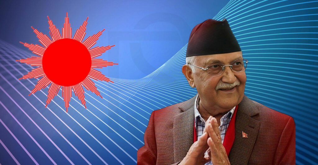 झापा, माघ ४ गते । नेपाल कम्युनिष्ट पार्टी (एमाले)ले का अध्यक्ष केपी शर्मा ओली झापा निर्वाचन क्षेत्र नं. ५ बाट