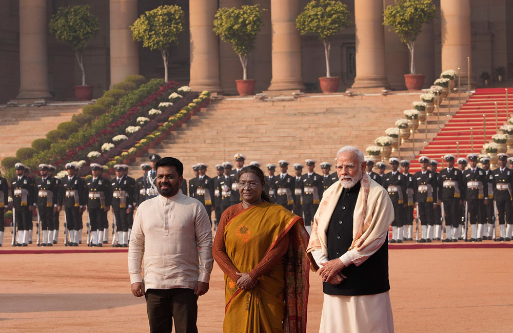 श्रीलङ्काका राष्ट्रपति दिसानायकेलाई राष्ट्रपति भवनमा राष्ट्रपति द्रौपदी मुर्मू र प्रधानमन्त्री नरेन्द्र मोदीले स्वागत गर्नुभएको छ । श्रीलङ्काका राष्ट्रपति श्रीलङ्काका राष्ट्रपति यही डिसेम्बर १५ देखि डिसेम्बर १७ सम्म भारतको राजकीय भ्रमणमा रहनुभएको छ ।