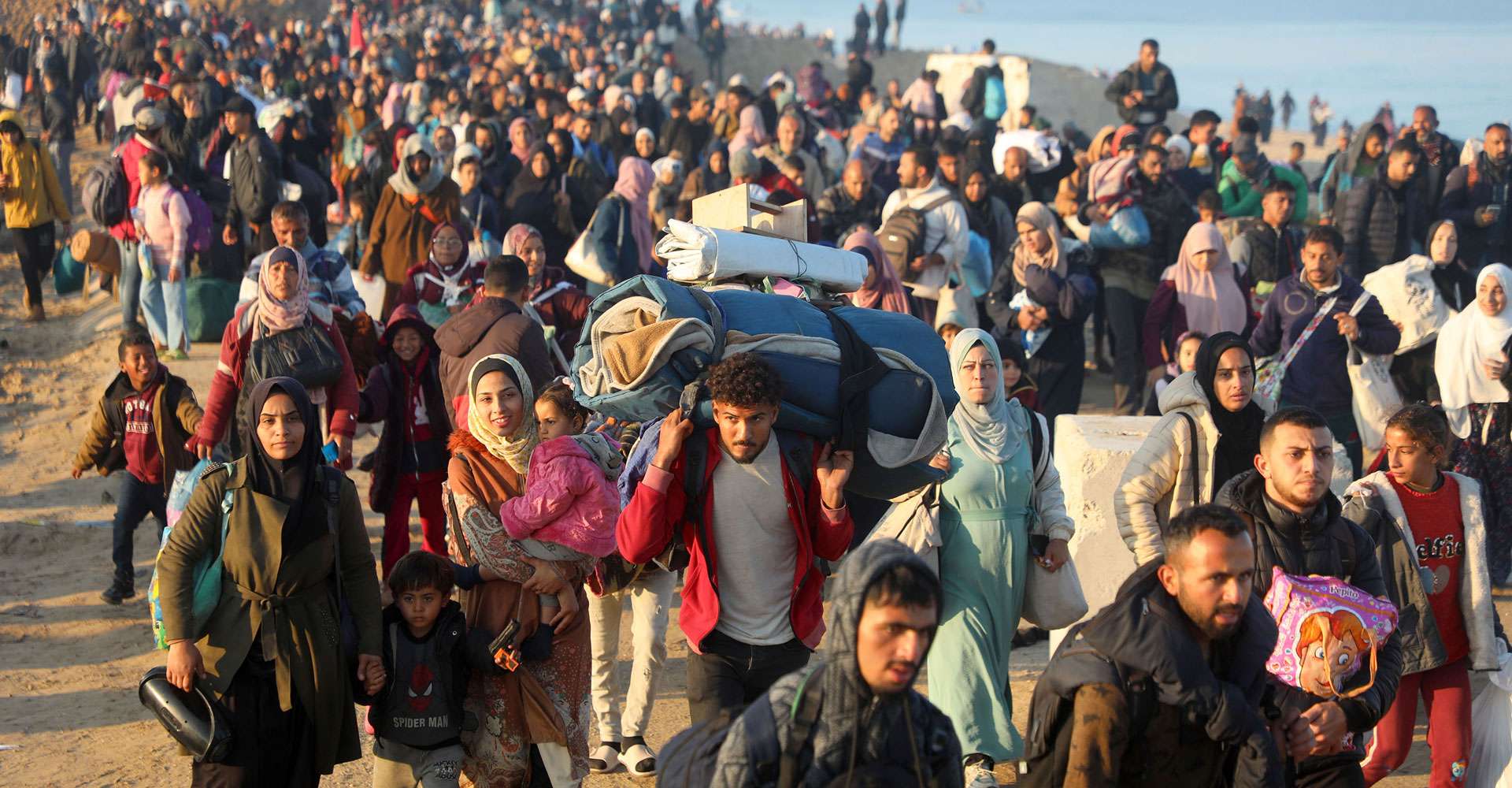 सन् २०२३ अक्टोबर ७ मा हमासले इजरायलमा गरेको आक्रमणले प्रेरित युद्धले गाजा पट्टीका करिब २४ लाख बासिन्दा विस्थापित भएका छन् । पछिल्लो छ हप्तादेखि युद्धविराम चलिरहेको छ । युद्धविरामले गाजामा रहेका करिब एक हजार नौ सय प्यालेस्टिनी कैदीको सट्टामा ३३ जना बन्धकलाई रिहा गर्न अनुमति दिइएको छ ।