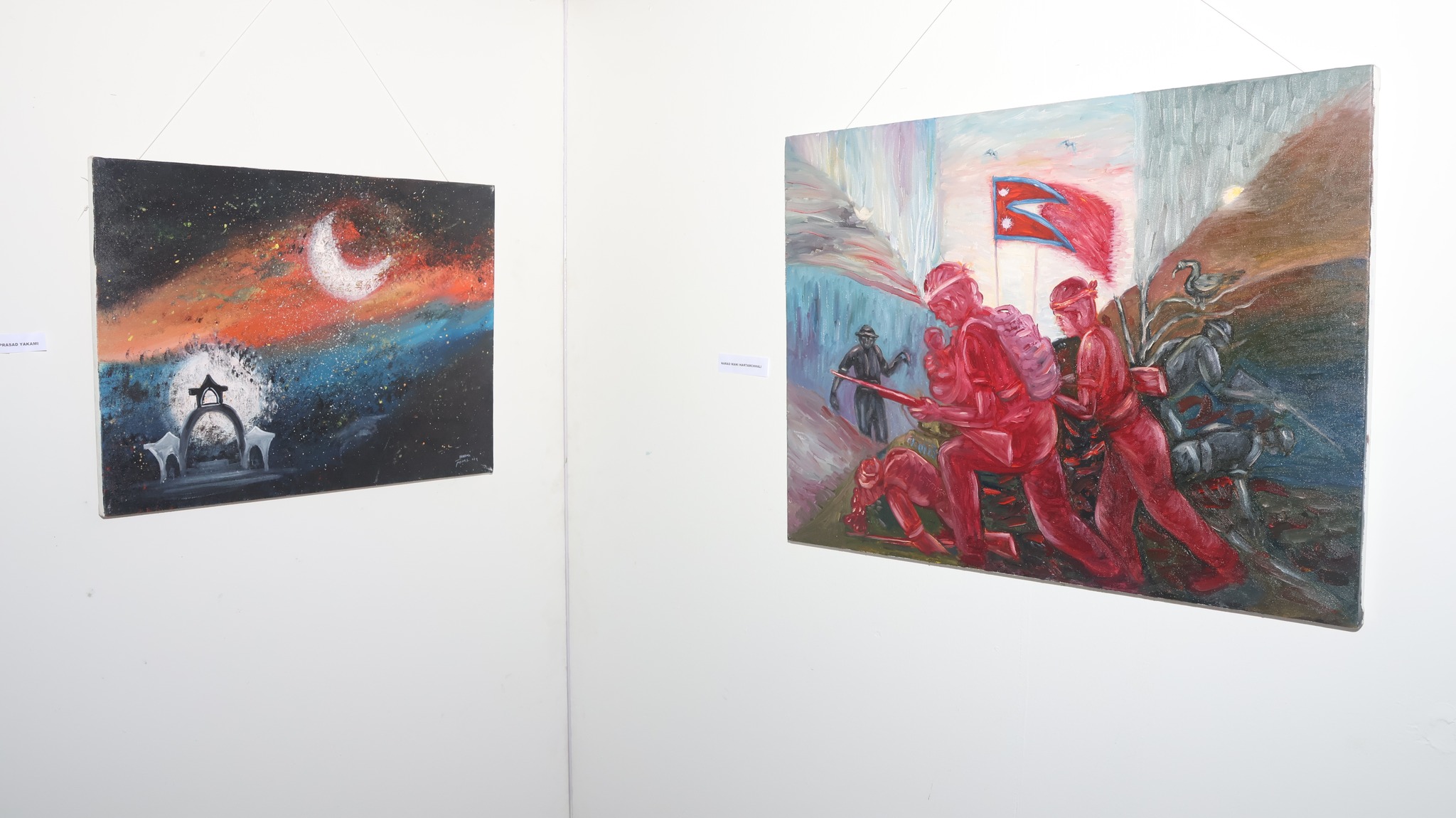 यस्तै सुरेम देशार, विवेक मुकारूङ, चन्द्रा श्रेष्ठ, राकेशचन्द्र श्रेष्ठ, दीपेन्द्रमान बनेपाली, किशोर नकर्मी, विनोदकुमार गुप्ता, एनबी गुरूङ, केशवराज खनाल, श्यामसुन्दर यादव, विक्रम प्रजापति, नारायणप्रसाद बोहजु, नेमबहादुर तामाङ, सुदनकुमार सिंह, विपना महर्जन, राजकुमार राना, कान्छाकाजी भासिमा, मङ्गोलपुत्र, मनरा प्रजापति, राजेन्द्र याकामी, महेश बास्ताकोटी, प्रकाश मानन्धर, एविना भडेलगायत कलाकारका ५४ कलाकृति राखिएका छन् ।