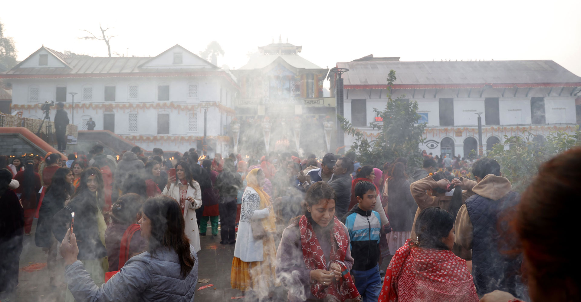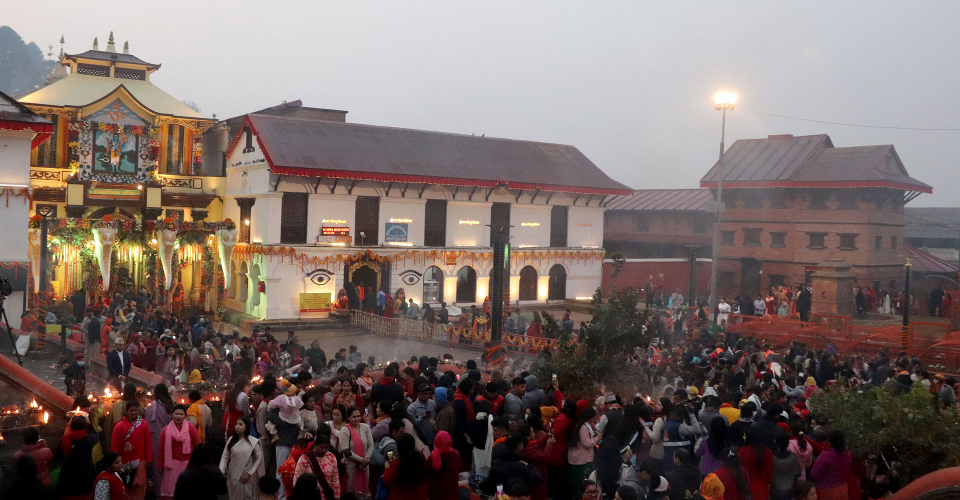 काठमाडौँ, १४ फागुनः महाशिवरात्रिका अवसरमा पशुपतिनाथ लगायत देशभरका शिवालयमा भक्तजनको भीड लागेको छ । महाशिवरात्रिका अवसरमा पशुपतिनाथ मन्दिरका चारै ढोका आज बिहान दुई बजेदेखि नै खुला गरिएको थियो । दुई बजेदेखि नै पशुपति क्षेत्रमा भक्तजनको भीड लागेको पशुपति क्षेत्र विकास कोषका प्रवक्ता रेवतीरमण अधिकारीले राससलाई जानकारी दिनुभयो । पशुपति क्षेत्रको बाहिरी भागबाट चार र भित्री भागमा आठवटा लामको व्यवस्था गरिएको छ ।