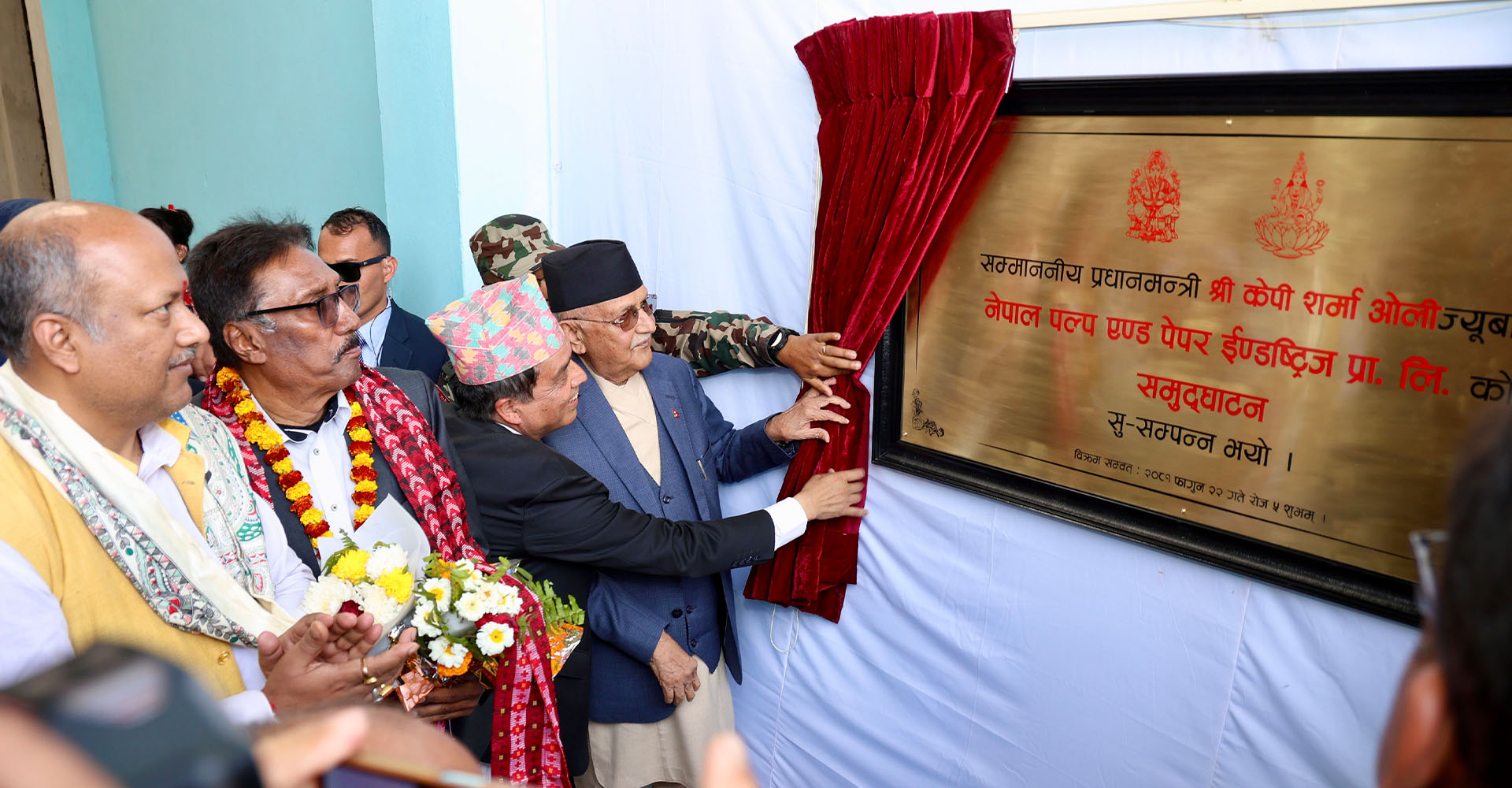 महोत्तरी, २२ फागुनः प्रधानमन्त्री केपी शर्मा ओलीले ‘नेपाल पल्प एण्ड पेपर इण्डष्ट्रिज’को आज उद्घाटन गर्नुभएको छ ।