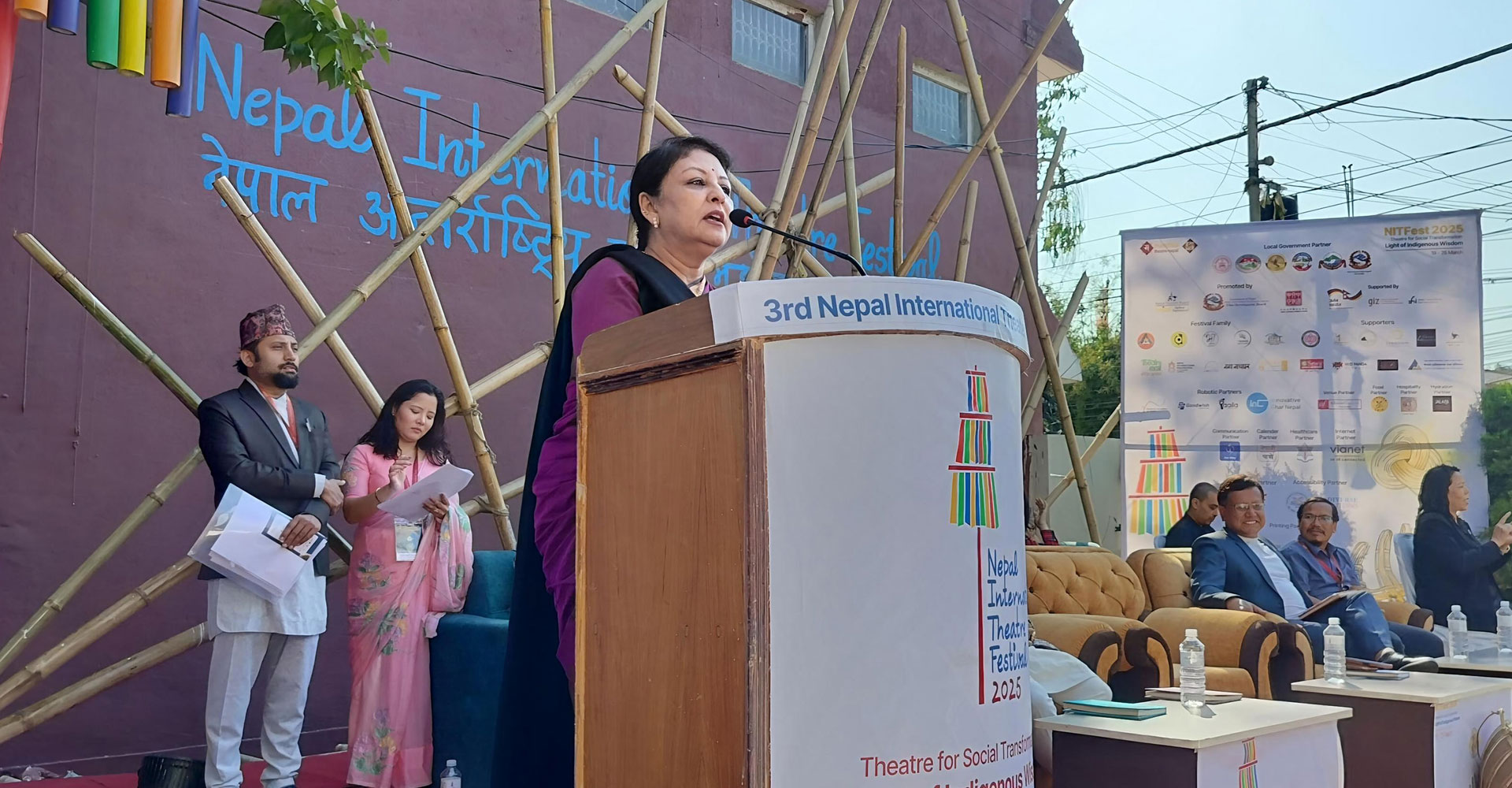 काठमाडौँ, ७ चैत : थापागाउँस्थित मण्डला नाटकघरमा आजदेखि ‘तेस्रो नेपाल अन्तरराष्ट्रिय नाट्य महोत्सव (निटफेस्ट)’ सुरु भएको छ । १२ देशका १७ नाटक सहभागी महोत्सवको नेपाल सङ्गीत तथा नाट्य प्रज्ञा–प्रतिष्ठानकी कुलपति निशा शर्माले दमाहा बजाएर उद्घाटन गर्नुभयो ।