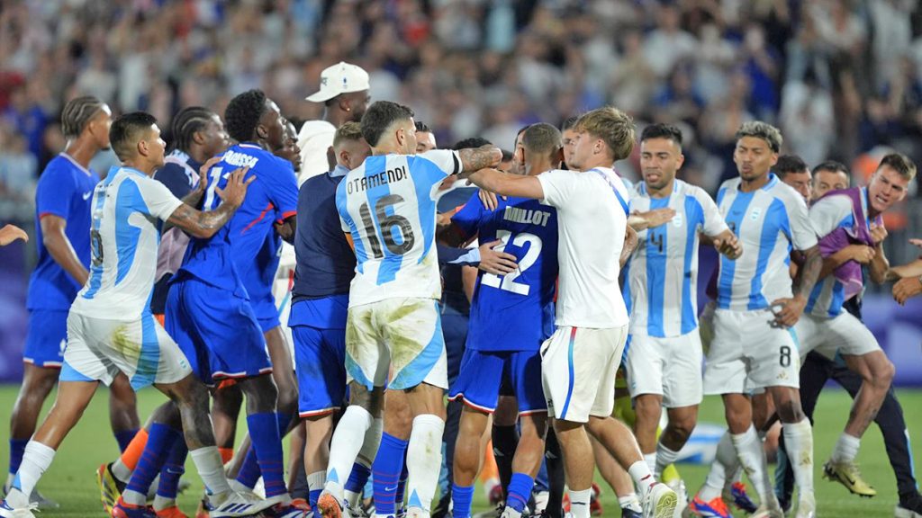 १९ साउन, काठमाडौं । घरेलु टोली फ्रान्स पेरिस ओलम्पिकको पुरुष फुटबलमा सेमिफाइनलमा प्रवेश गरेको छ । शुक्रबार राति भएको खेलमा अर्जेन्टिनालाई १-० ले पराजित गर्दै फ्रान्स अन्तिम चारमा प्रवेश गरेको हो । बोर्डेमा भएको खेलमा फ्रान्सका लागि जिन फिलिपि माटेटाले पाँचौ मिनेटमै गोल गरी अग्रता दिलाएका थिए । त्यही गोल नै फ्रान्सको जितमा निर्णायक बन्यो ।