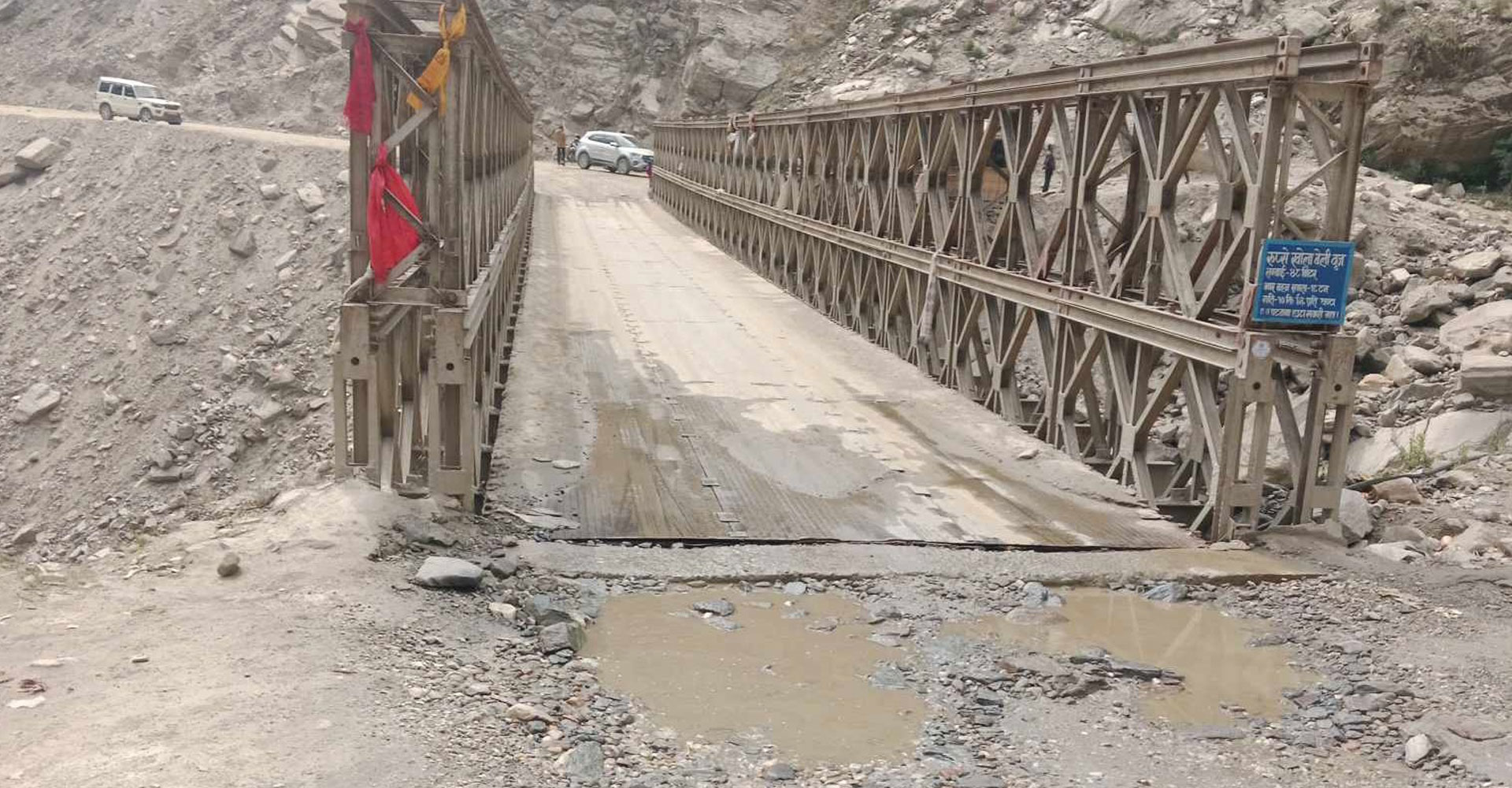 स्तरोन्नतिको क्रममा रहेको बेनी–जोमसोम–कोरला सडकका पक्की पुल निर्माण नभएका ठाउँमा अस्थायी रूपमा सवारीसाधन आवतजावतका लागि बेलिब्रिज जडान गरिएको छ । बेनी–जोमसोम–कोरला आयोजनाले बेलिब्रिजहरूमा क्षमताभन्दा बढी तौलका सवारीसधान सञ्चालन नगर्न आवश्यक जानकारीसहित सूचना बोर्ड राखिएको जनाएको छ ।