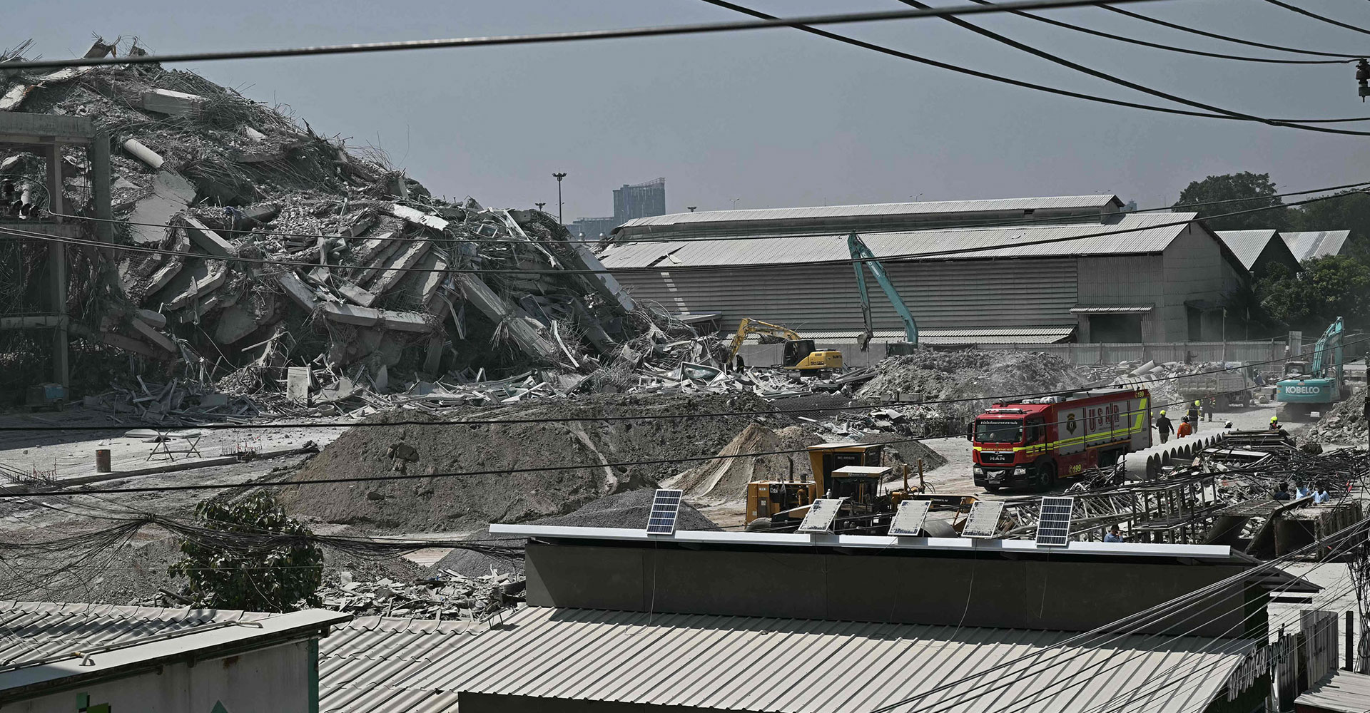 थाई आपत्कालीन प्रतिक्रियाकर्ताहरूले राजधानी बैंककमा शक्तिशाली भूकम्प आएपछि खसेको भवनको भग्नावशेषमुनि दुई जनाको मृत्यु भएको र अज्ञात सङ्ख्यामा अन्य अझै रहेको बताएका छन् । उद्धारकर्मी सोङ्वुट वाङपोनले निर्माणाधीन अग्लो भवनको भग्नावशेषको थुप्रो बाहिर कुरा गर्दै पत्रकारहरूलाई अन्य सात जना जीवित फेला परेका जानकारी दिनुभयो ।