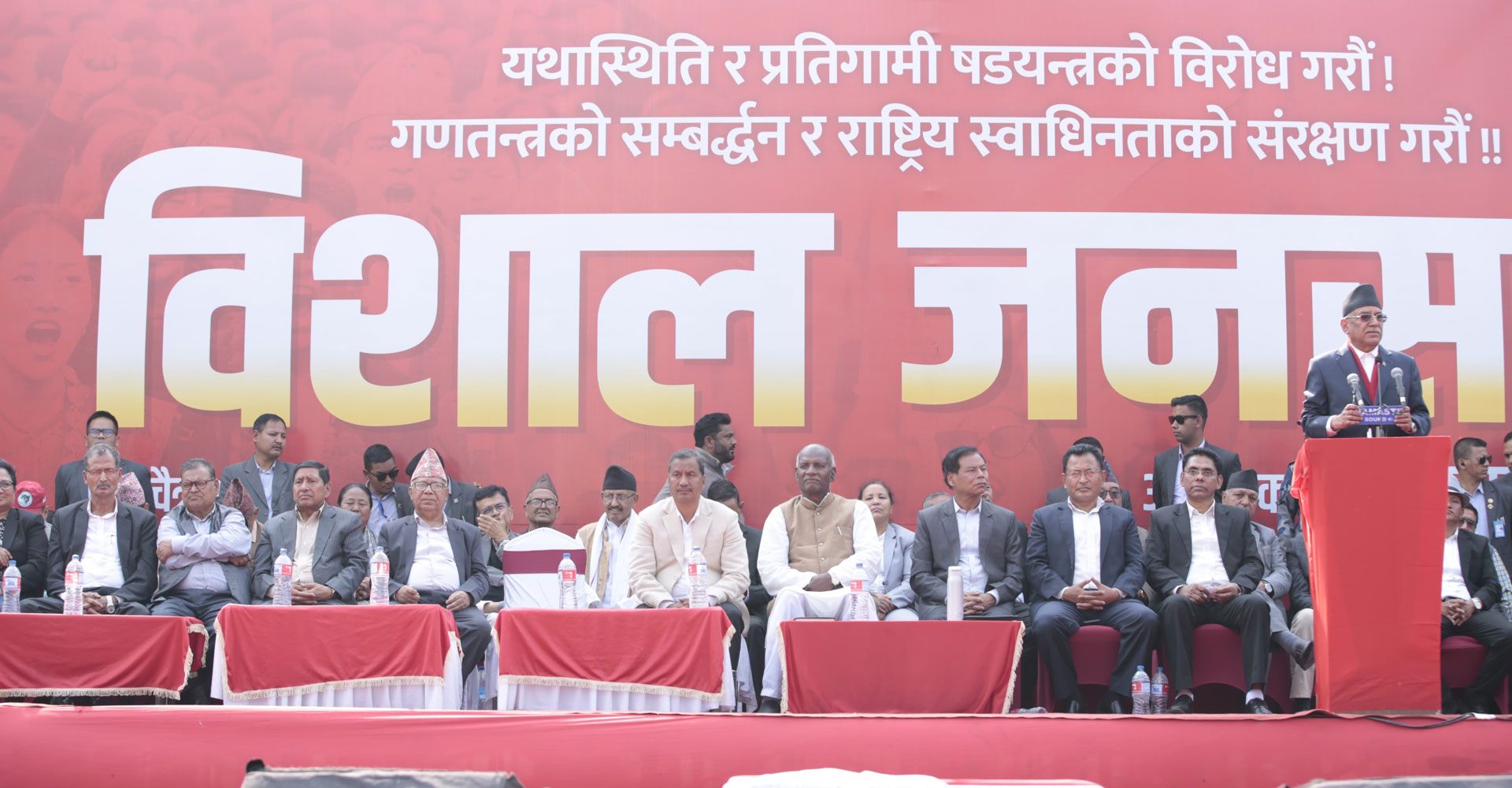 नेपाल कम्युनिष्ट पार्टीका महासचिव नेत्रविक्रम चन्दले जनताको सङ्घर्षको बलमा परास्त भएका शक्ति फेरि जुर्मुराउने प्रयास गरिरहेको उल्लेख गर्दै सङ्घीय लोकतान्त्रिक गणतन्त्रबाट पछाडि फर्कने विषय कुनै हालतमा स्वीकार्य नभएको बताउनुभयो । “जनतालाई सामन्ती व्यवस्थाको खाँचो छैन, फेरि पनि जनतालाई उत्पीडनमा पर्न दिँदैनाँै”, उहाँले भन्नुभयो, “अबको यात्रा पश्चगमन नभई अग्रगमन हो ।”