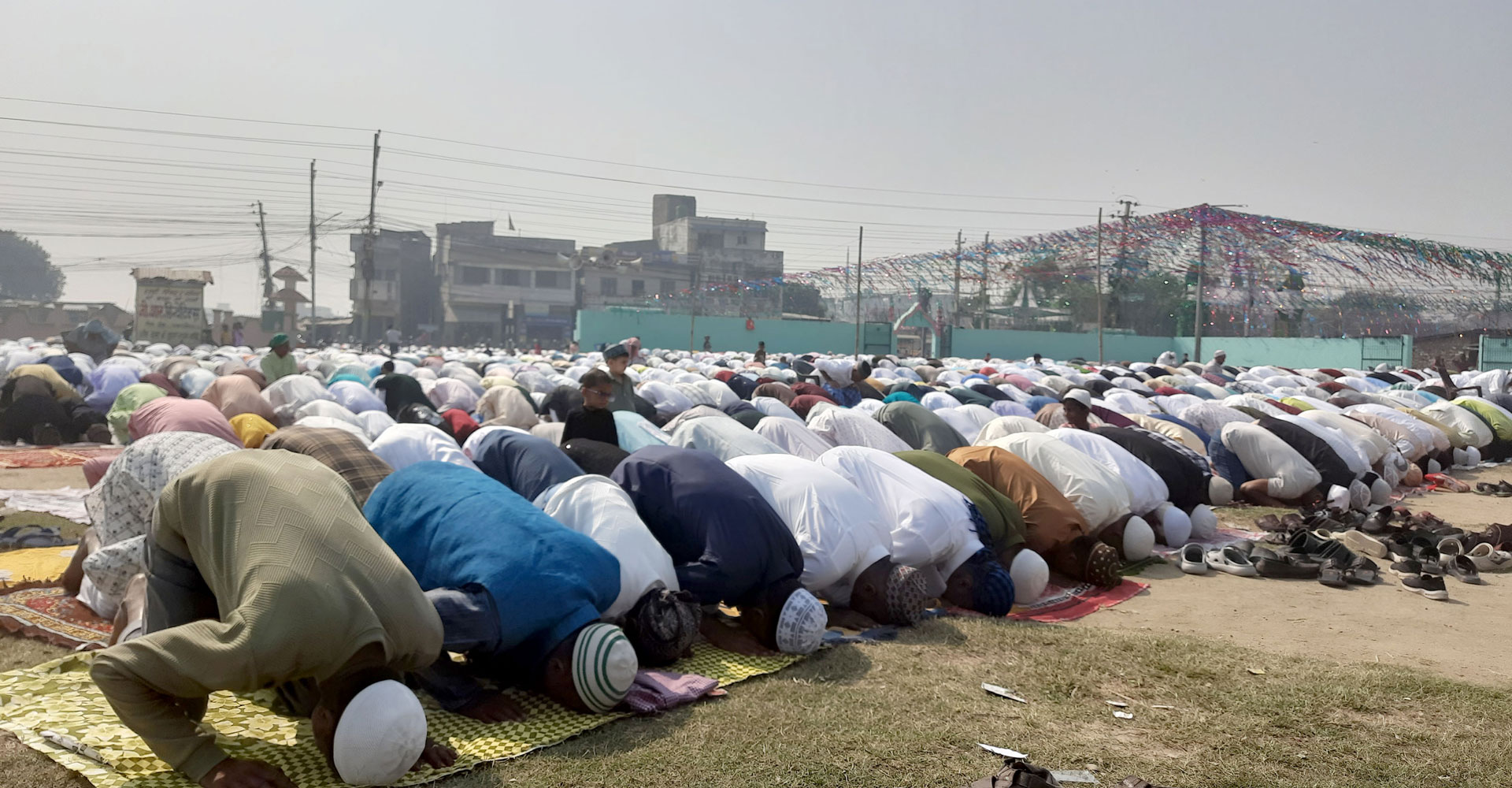 ईदका दिन मुस्लिम समुदायका बर्तालु बिहानै मस्जिद र ईदगाहमा पुगी सामूहिक नमाज पढेर आफू तथा आफ्नो परिवारको तर्फबाट भएको गल्तीको क्षमायाचना गर्दै अल्लाह (भगवान)सँग आशीर्वाद लिने गर्दछन् । वीरगञ्जमा ईदगाहचोक, छपकैया, मुली, नगवा, नयकाटोलालगायत स्थानमा पुगी नमाज पढेर दुवाअर्थात् आशीर्वाद मागेको दृश्य देखिन्थ्यो । नमाज पढेर सकेपछि मुस्लिम समुदायले एकापसमा अङ्कमाल गर्दै ईदको शुभकामना साटासाट गरेका छन् ।
