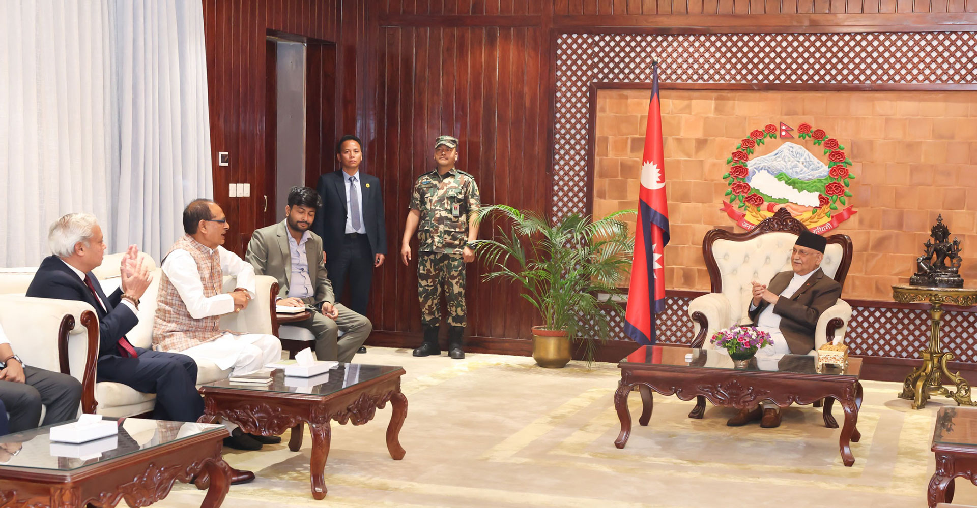 काठमाडौँ, २७ चैतः प्रधानमन्त्री केपी शर्मा ओलीसँग नेपाल भ्रमणमा रहनुभएका भारतका कृषि तथा किसान कल्याणमन्त्री शिवराजसिंह चौहानले आज शिष्टाचार भेट गर्नुभएको छ ।