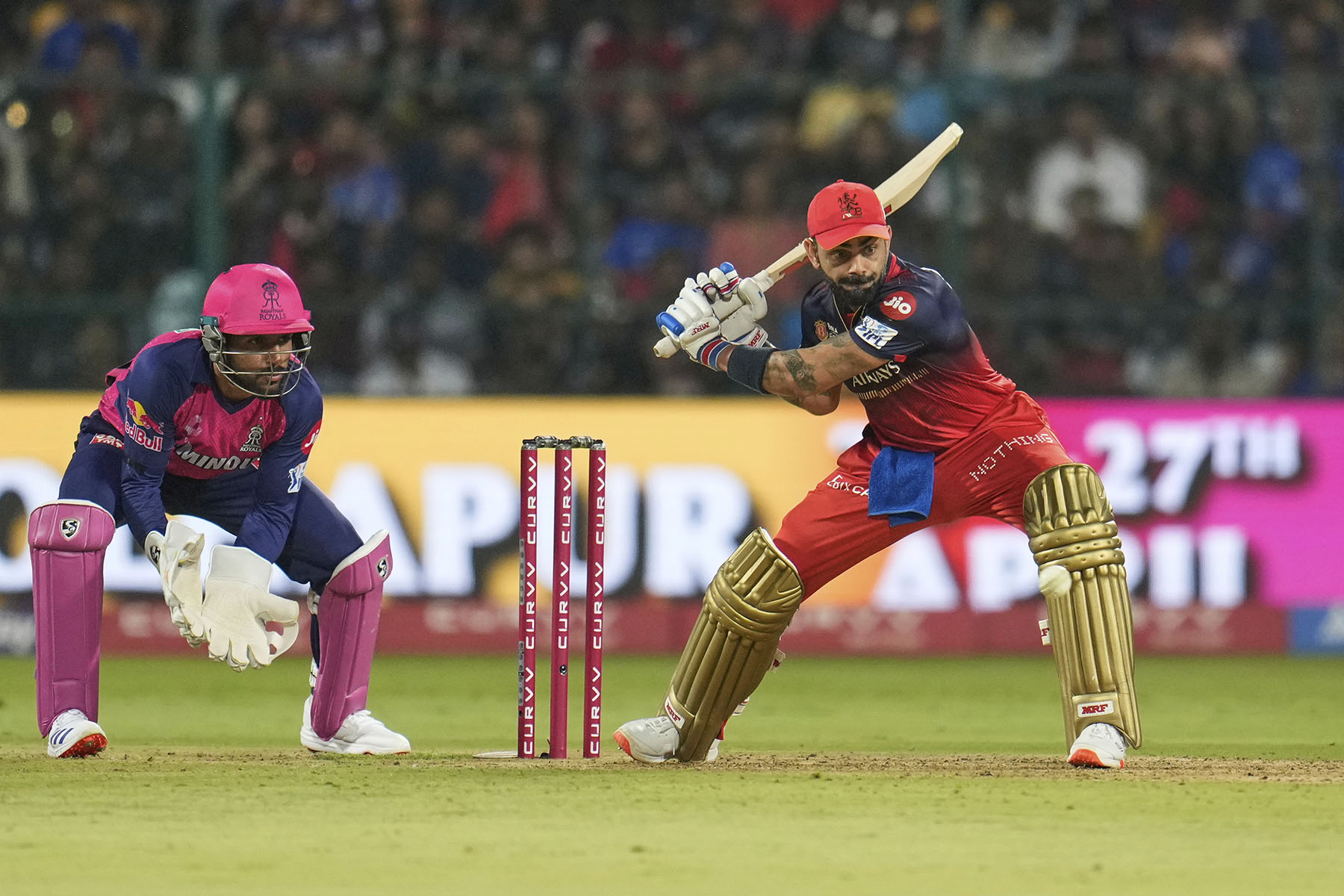 काठमाडौँ, १२ बैसाख: इन्डियन प्रिमियर लिग (आइपिएल) खेल न. ४२ आर सी बि र राजस्थान रोयल्स बिचको खेलमा आरसीबी बिजयी भएको छ । अप्रिल २४, २०२५ मा भएको खेलमा आरसीबीले पहिले ब्याटिंग गर्दै २० ओभरमा ५ विकेटको क्षतिमा २०५ रन बनाउन सफल भयो, २०६ रनको लक्ष्य पछ्याउने क्रममा राजस्थान रोयल्सले २० ओभरमा ९ विकेटको क्षतिमा १९४ रन मात्र बनाउन सक्यो र आरसीबीसंग ११ रनले पराजित हुन् पुग्यो । आरसिबीका प्रवाभशालि खेलाडी बिराट कोहलीले ४२ बलमा दुइ छक्का र आठ चौकाको मद्दत ले ७० रन बनाए भने देबदत्त पडीक्कलले ५० रन प्रहार गरे |