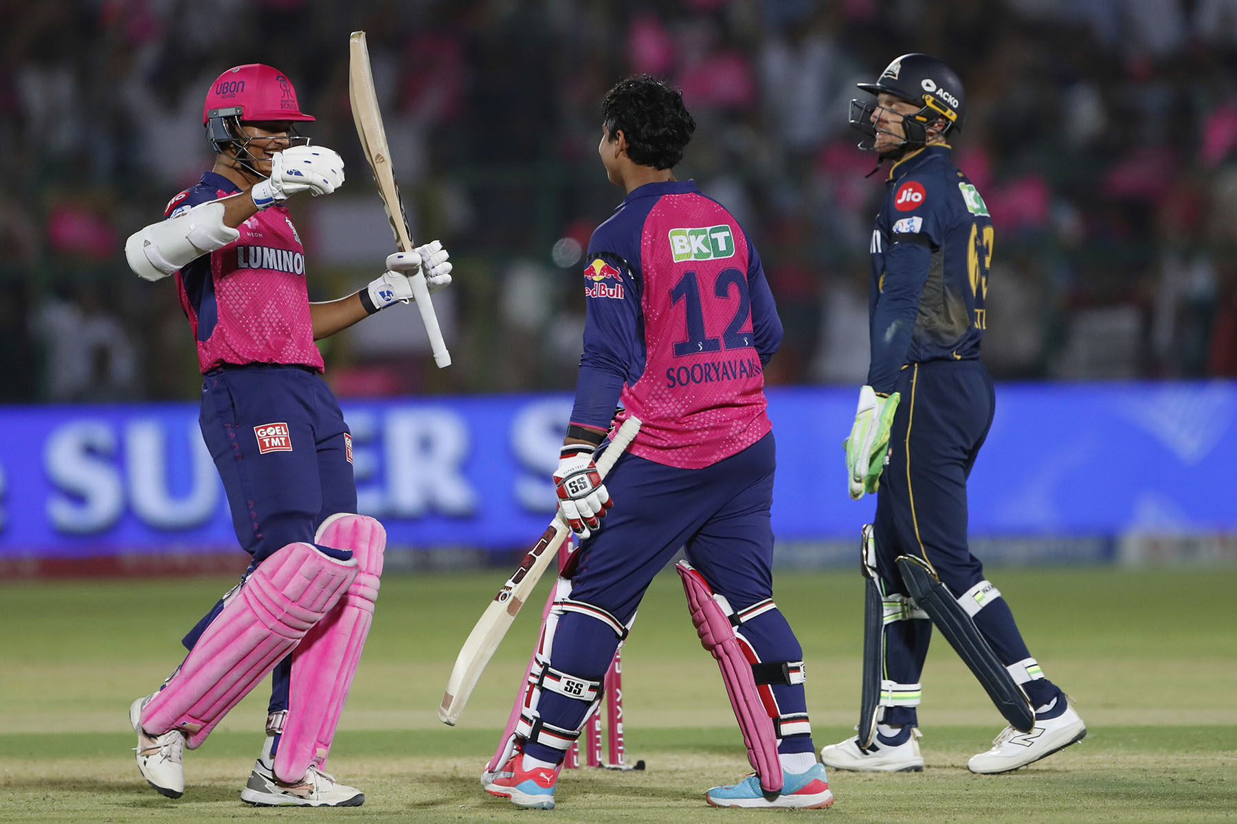 पहिलो पारि ब्याटिंग गरेको गुजरात टाइटन्सले २० ओभर ब्याटिंग गर्दै ४ विकेटको क्षतिमा २०९ रन बनायो भने २१० रनको लक्ष्य पछ्याउने क्रममा राजस्थान रोयल्सले १५.५ ओभरमा २ विकेट गुमाउदै २१२ रन बनाएर जित हासिल गर्यो । गुजरातका साई सुदर्शनले ३० बलमा ३९ रन , शुभमन गिलले ५० बलमा ८४ रन, जॉस बटलरले २६ बलमा ५० रनको योगदान दिदै ठुलो योगफल तयार परेका थिए । राजस्थान रोयल्सका महीश तीक्षणाले ३ विकेट लिए भने जोफ़्रा आर्चर र संदीप शर्माले १/१ विकेट लिए। राजस्थान रोयल्सका ब्याट्सम्यान वैभव सूर्यवंशीले ३८ बलमा १०१ रन, यशस्वी जायसवालले ४० बल खेल्दै ७० रन र रियान पराग १५ बलमा ३२ रनको पारि खेले । राजस्थानका प्रसिद्ध कृष्णा र रासिद खानले १/१ विकट लिए ।