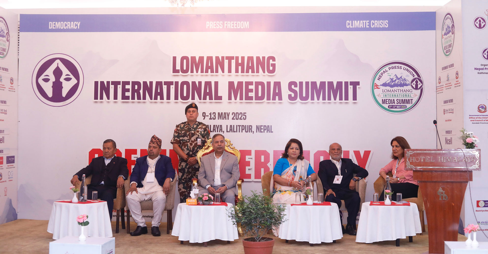 नेपाल प्रेस युनियन केन्द्रीय समितिद्वारा ललितपुरमा आज आयोजित लोमान्थाङ अन्तरराष्ट्रिय मिडिया समिटको उद्घाटन गर्दै उहाँले जलवायु परिवर्तनका कारण उत्पन्न सङ्कट नियन्त्रण तथा समाजमा चेतना फैलाउन मडियाले प्रभावकारी भूमिका निर्वाह गर्नुपर्नेमा जोड दिनुभयो ।