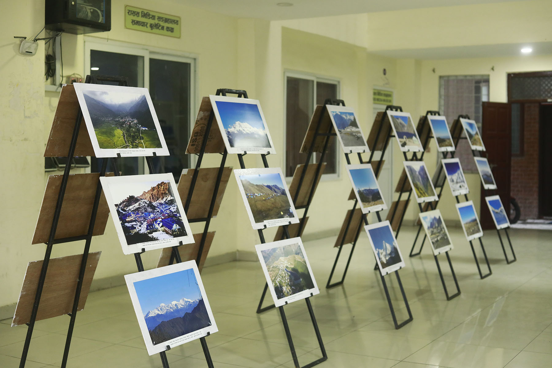 भद्रकाली प्जालास्थित रासस केन्द्रीय कार्यालयमा ‘पर्वतीय पर्यटनः हाम्रो शान हाम्रो, पहिचान’ शीर्षकमा आयाजना गरिएको प्रदर्शनीमा हिन्दूकुश हिमशृङ्लका हिमाल, हिमाली र पहाडी जनजीवन तथा देशका प्रमुख पर्यटकीयस्थलका ९६ वटा तस्बिर समेटिएका छन ।