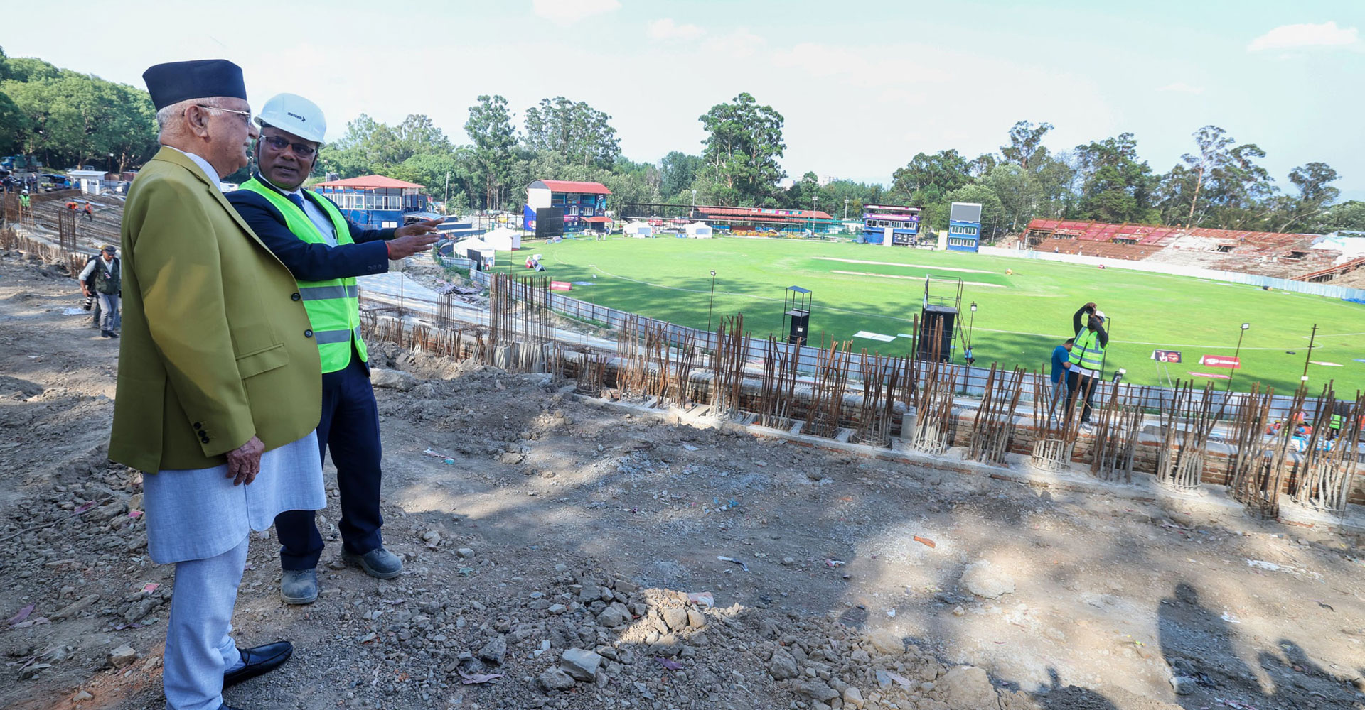 प्रधानमन्त्री ओलीले कार्यभार सम्हालेपछि गत असार ३१ गते पहिलो निर्णयका रूपमा ३०० दिनभित्र उक्त क्रिकेट मैदानमा प्यारापिट र फ्लडलाइट जडान गर्ने घोषणा गर्नुभएको थियो । उहाँलाई उपप्रधानमन्त्री तथा सहरी विकासमन्त्री प्रकाशमान सिंह, सहरी विकास मन्त्रालयका सचिव गोपालप्रसाद सिग्देल, उक्त निर्माण कार्यको कार्यान्वयन निकाय सङ्घीय सचिवालय तथा व्यवस्थापन कार्यालयका प्रमुख चक्रवर्ती कंठसहित निर्माण व्यवसायीले हालसम्मको कार्यप्रगतिबारे जानकारी गराउनुभएको थियो ।