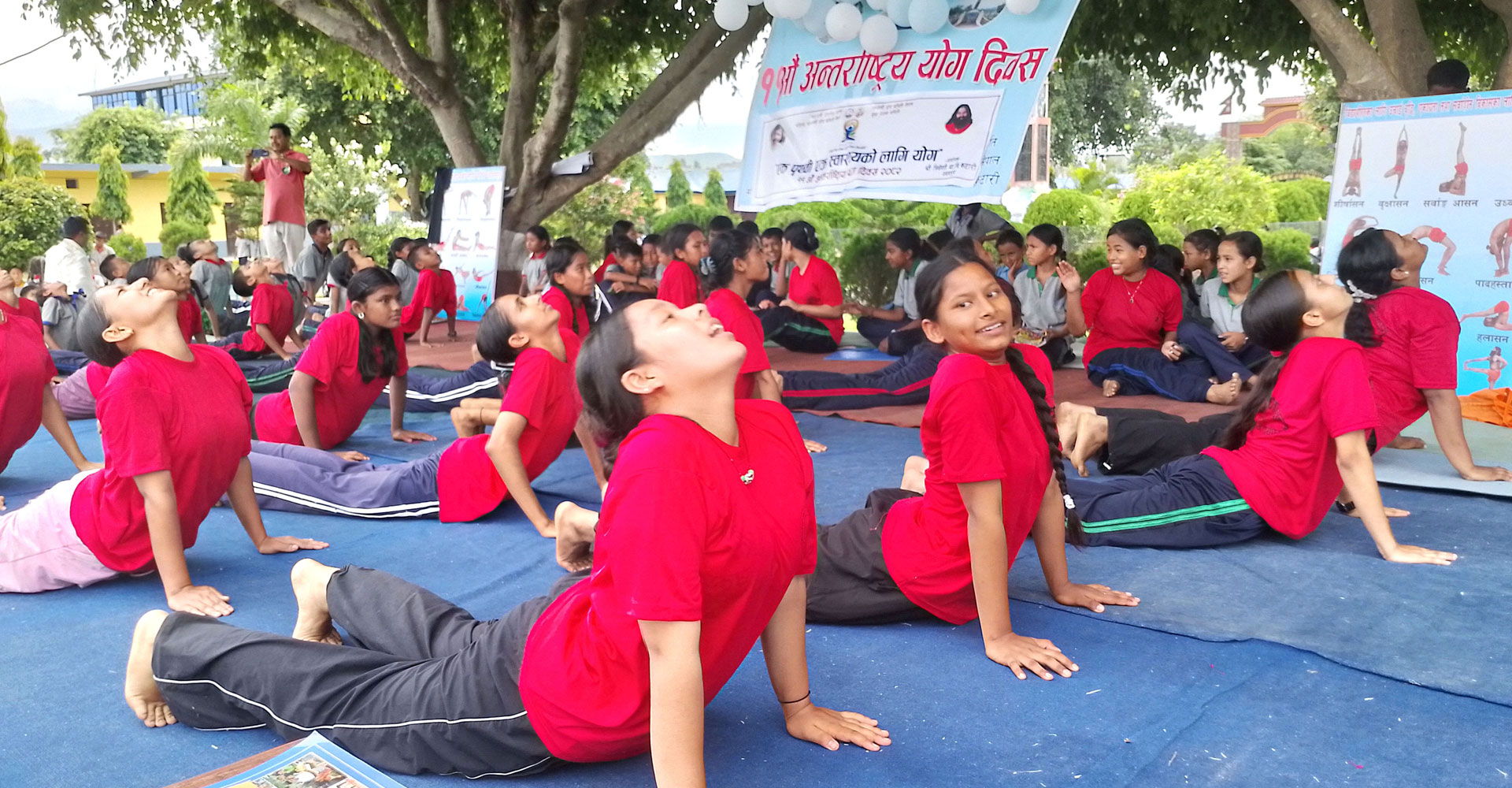 काठमाडौँ, ७ असार : अन्तर्राष्ट्रिय योग दिवस नेपालमा पनि आज विभिन्न कार्यक्रम आयोजना गरी मनाइँदै छ । अन्तर्राष्ट्रिय योग दिवस हरेक वर्ष जुन २१ तारिखका दिन विभिन्न जनचेतनामूलक कार्यक्रम आयोजना गरी मनाइन्छ । संयुक्त राष्ट्र सङ्घको महासभाले सन् २०१४ मा गरेको निर्णय अनुसार सन् २०१५ जुन २१ देखि अन्तर्राष्ट्रिय योग दिवस मनाउन थालिएको हो । भारतीय प्रधानमन्त्री नरेन्द्र दामोदरदास मोदीले संयुक्त राष्ट्र सङ्घको ६९ औँ महासभामा योग सबैका लागि सधैँका लागि आवश्यक भएकाले अन्तर्राष्ट्रिय योग दिवसको घोषणा गर्न प्रस्ताव गर्नुभएको थियो ।