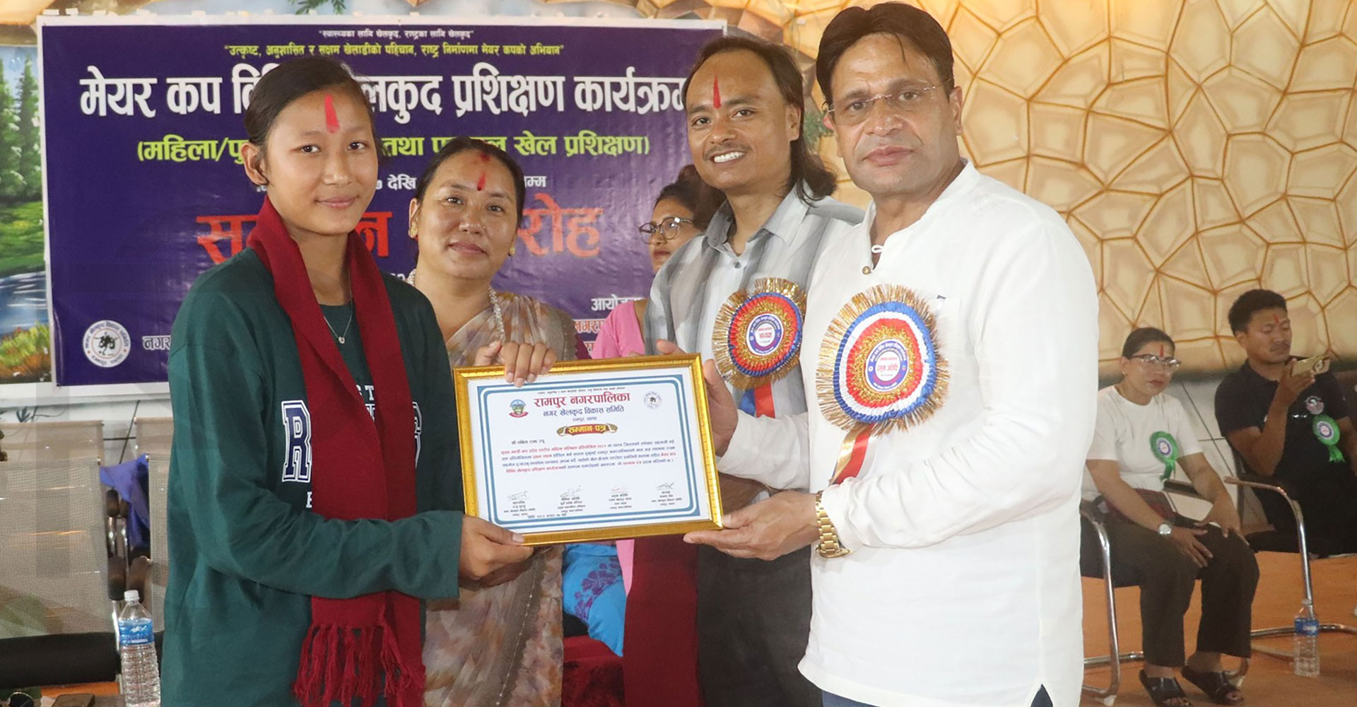 रामपुर (पाल्पा), ८ असारः खेलक्षेत्रको विकास गर्न रामपुर नगरपालिकाले खेलाडी उत्पादनमा जोड दिएको छ । मेयर कप विविध खेलकुद प्रशिक्षण कार्यक्रमअन्तर्गत नगरमा खेलाडी उत्पादन गर्न यहाँका बालबालिकालाई भलिबल र फुटबल प्रशिक्षण दिन थालिएको छ ।