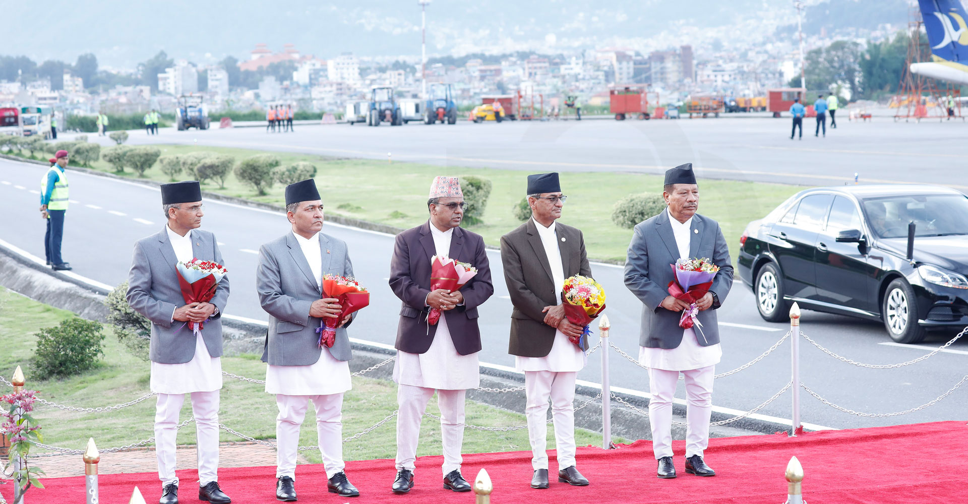 प्रधानमन्त्री ओलीलाई त्रिभुवन अन्तर्राष्ट्रिय विमानस्थलको अतिविशिष्ट कक्षमा उपप्रधानमन्त्री एवं सहरी विकासमन्त्री प्रकाशमान सिंह, गृहमन्त्री रमेश लेखक, संस्कृति, पर्यटन तथा नागरिक उड्डयनमन्त्री बद्रीप्रसाद पाण्डे र मुख्यसचिव एकनारायण अर्यालले बिदाइ गर्नुभयो । प्रधानमन्त्रीको बिदाइका लागि विमानस्थमा उच्च पदस्थ सरकारी अधिकृत एवं सुरक्षा निकायका प्रमुख उपस्थित हुनुहुन्थ्यो ।
