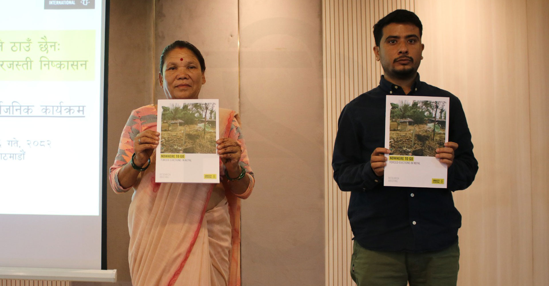 काठमाडौँ, ५ साउनः एम्नेस्टी इन्टरनेसनल नेपालले सन् २०२० देखि २०२४ का बीच भएका पाँचवटा जबरजस्ती निष्कासनका घटनामा केन्द्रित रही गरेको अध्ययन प्रतिवेदन आज सार्वजनिक गरेको छ । एम्नेस्टी नेपालका अध्यक्ष विपिन बुढाथोकी र जबर्जस्ती निष्कासनको घटनाबाट पीडित जानुका पौडेलले सो प्रतिवेदन सार्वजनिक गर्नुभएको हो ।