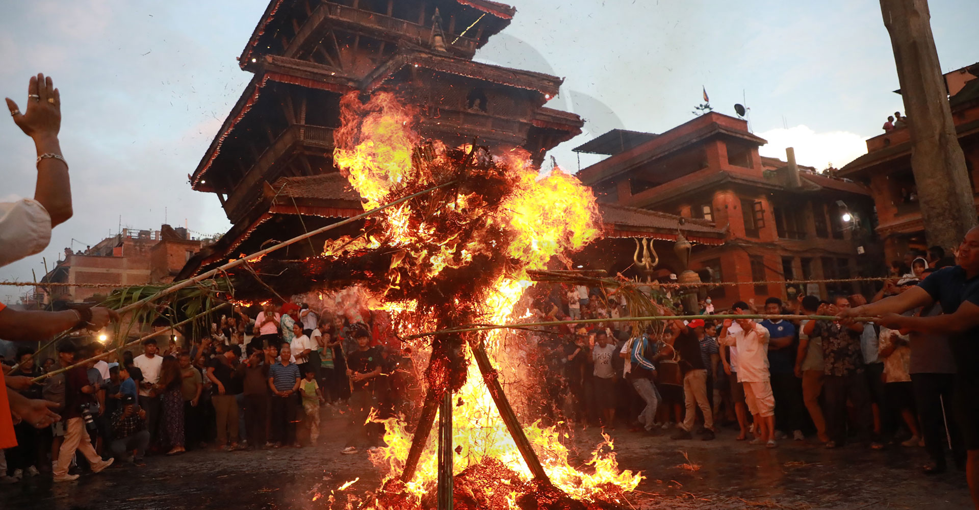 नेवार समुदायले परापूर्वकालदेखि मनाउँदै आएको यसपर्वमा गठामङ्गल नाम गरेको नरभक्षी राक्षस मारिएको सम्झना स्वरूप आज साँझ भक्तपुरको टोल-टोलबाट हरियो नर्कट, निगालो र गहुँको छ्वालीबाट तीनखुट्टे राक्षसको रूप बनाएर टोलटोल घुमाउँदै दोबाटो र चौबाटोमा पुर्याइ जलाएर पर्व मनाएको हो ।