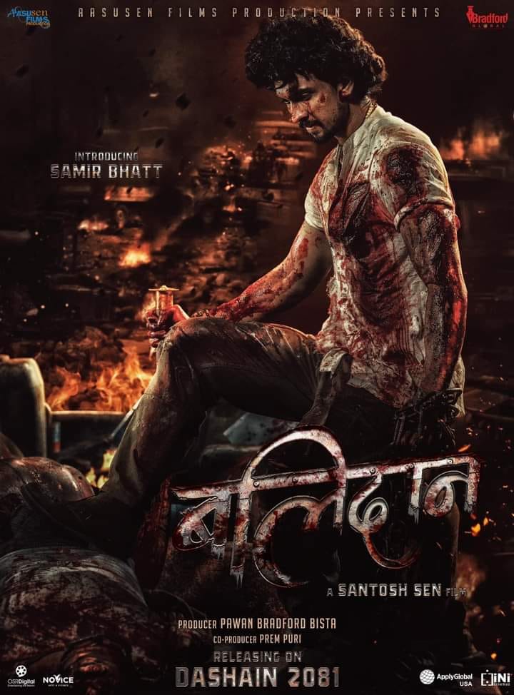 ‘बलिदान’ मा समीर भट्ट, सौगात मल्ल, अर्पण थापा, ऋचा शर्मा, कविता राय, हेमन्त बुढाथोकी र निर्देशक सेनलगायतका कलाकारको अभिनय देख्न सकिनेछ । आसुसेन फिल्म्स प्रालिको ब्यानरमा निर्माण भएको सिनेमाका निर्माता पवन ब्राडफोर्ड बिस्ट र कार्यकारी निर्माता प्रेम पुरी हुन् । यो सिनेमालाई वडादशैंको फूलपातीको दिनबाट देशव्यापी प्रदर्शनमा ल्याउने तयारी गरिएको छ । यो सिनेमाले समीरको पहिलो सिनेमा ‘१२ गाउँ’को बक्स अफिस रेकर्डलाई पछि पार्ने धेरैको विश्वास छ ।
