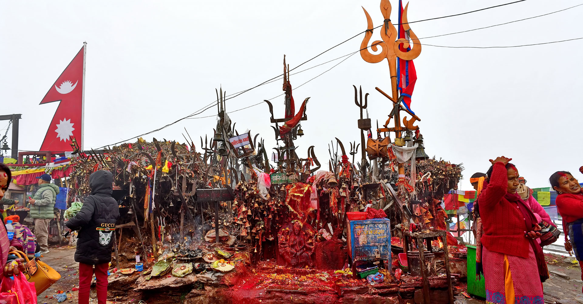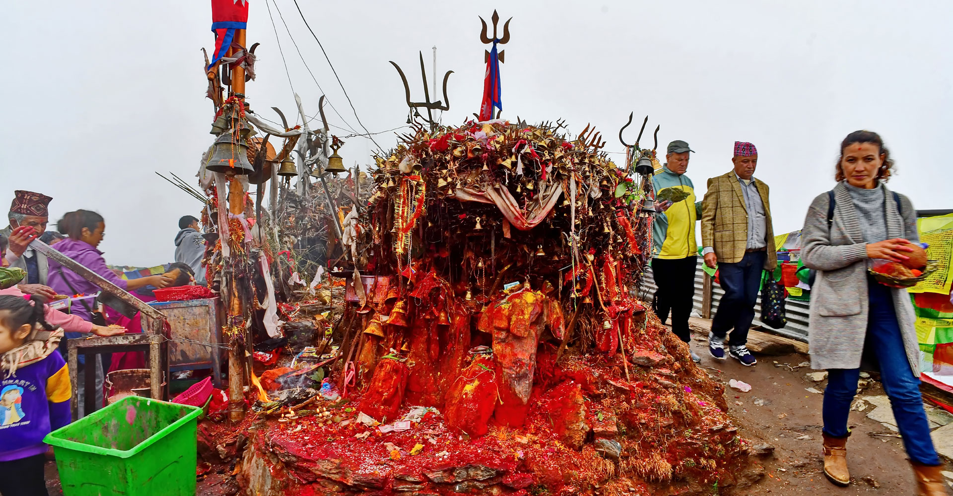 उहाँका अनुसार जनैपूर्णिमादेखि कार्तिकपूर्णिमासम्म तामाङ, थामी आदि जनजाति समुदायमा ढ्याङ्ग्रोमा त्रिशूल राखेर बजाउँदै आई देवी पुज्ने चलन थियो, अहिले पनि त्यो छ । जनैपूर्णिमादेखि कार्तिकपूर्णिमासम्म दोलखा, सिन्धुपाल्चोक, सिन्धुलीलगायत स्थानबाट धामीझाँव्रmी शक्ति साधना र प्रार्थना गर्न यहाँ आउने गर्छन् । अहिले वार्षिक करिब साढे दुई लाख भक्तजन आउने आकलन छ । कालिञ्चोक दर्शन गर्न भारतलगायत देशका भक्तजन पनि आउने गरेका पाइन्छ ।