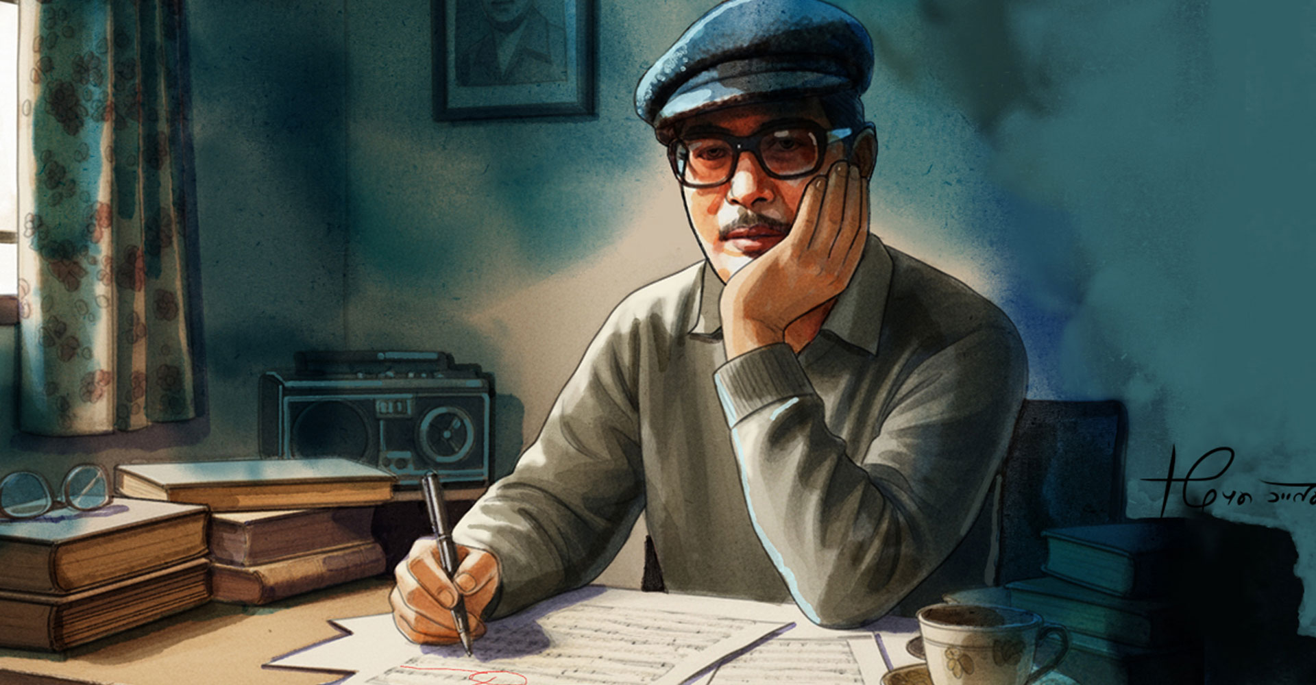 नारायणगोपाल त्यतिबेला भारतको बडौदामा शास्त्रीय सङ्गीत अध्ययन गर्दै थिए । उनलाई सोही गीत रेकर्डिङका लागि बडौदाबाट बम्बई (हाल मुम्बई) बोलाइएको थियो । गीतका लागि रिहर्सल पनि सुरु भयो । सङ्गीतकार जयदेव नारायणगोपालबाट ज्यादै प्रभावित भएका थिए । रिहर्सल हुँदै गर्दा गीत रेकर्डिङका लागि स्टुडियो पनि बुक गरियो तर अचानक नारायणगोपाललाई रुघाखोकीले नराम्ररी च्याप्यो । त्यसपछि उनले त्यो गीत गाउन सकेनन् । बाध्य भएर भारतीय गायक मन्नाडेको स्वरमा त्यो गीत रेकर्ड गराइयो ।