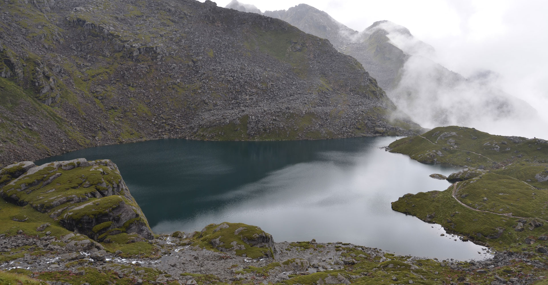 हरेक उकालोको पोस्रामा चौतारा या पाटीपौवा भेटिन्थे । एकछिन थचक्क बस्दा थकान मेटिन्थ्यो । पाटीपौवा ठाउँ ठाउँमा बनाइएको भए पनि अत्यन्तै फोहोर देखिन्थ्यो । यात्रुको सहजीकरणका लागि बनाइएका साइनबोर्ड पनि लथालिङ्ग अवस्थामा थिए । जति उकालो चढ्यो त्यति चिसो हुँदै थियो । भोकले झुत्ती खेलिरहेको थियो । ८ बजेतिर करिब ४१०० मिटरमा रहेको चोकरमोकर पुग्यौँ । चोकरमोकरमा दुई वटा होमस्टे रहेछन् । बगामबाट जिप रिजर्भ गरेर यहाँसम्म आइपुग्न सकिने रहेछ । स्थानीयका अनुसार अबको वर्षभित्र यहाँ सात वटा होमस्टे थपिने रहेछन् । चोकरमोकरका स्थानीयले अन्य खानेकुरा नभए पनि फलफूल, चिया, सातु दिन सकिने बताए । हामीले चिया र सातु खायौँ । मकै र भटमास भुटेर पिसेपछि सातुले लेक लाग्नबाट पनि बचाउने रहेछ । सातु र चियाको १५० रुपियाँ ति¥यौँ । हामी फेरि उकालो लाग्यौँ । हिमशृङ्खला नियाल्दै करिब ९ः३० बजे भैरवकुण्ड पुग्यौँ ।