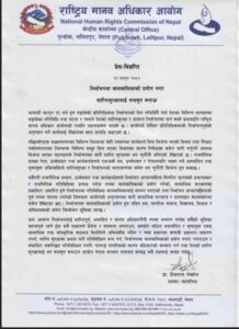 काठमाडौं, फागुन १२ गते । राष्ट्रिय मानवअधिकार आयोगले आगामी फागुन २१ गते हुन गइरहेको प्रतिनिधिसभा निर्वाचनको दिन नजिकिँदै गर्दा देशका विभिन्न भागहरुमा भइरहेका गतिविधि तथा घटना र त्यसले देशको शान्तिसुरक्षा र आसन्न निर्वाचनमा पार्न सक्ने प्रभावप्रति गम्भीर ध्यानाकर्षण भएको जनाएको छ । आयोगले देशैभर प्रतिनिधिसभाको निर्वाचनपूर्वको अनुगमन गर्ने कार्यलाई तीव्रताका साथ अगाडि बढाएको पनि उल्लेख गरेको छ । आयोगले निर्वाचनमा बालबालिकाको प्रयोग नगर्न अनुरोध गरेको छ ।