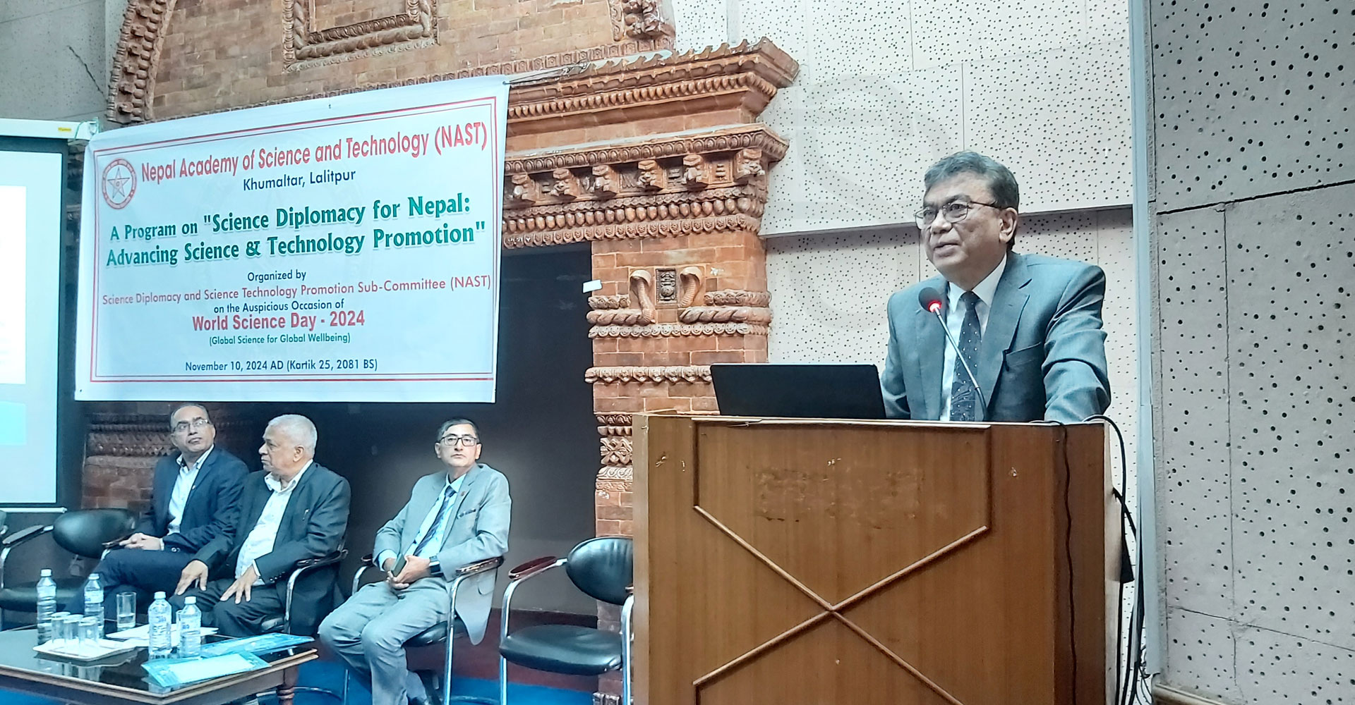 २५ कात्तिक, काठमाडौं । नेपाल विज्ञान तथा प्रविधि प्रज्ञा–प्रतिष्ठान (नास्ट)द्वारा आज यहाँ आयोजित विज्ञान कूटनीतिसम्बन्धी कार्यक्रममा धारणा राख्नुहुने वक्ताहरुले नेपालका प्रत्येक विश्वविद्यालयमा विज्ञान कूटनीतिसम्बन्धी पाठ्यक्रम आवश्यक छ भन्नेमा जोड दिनुभएको छ ।