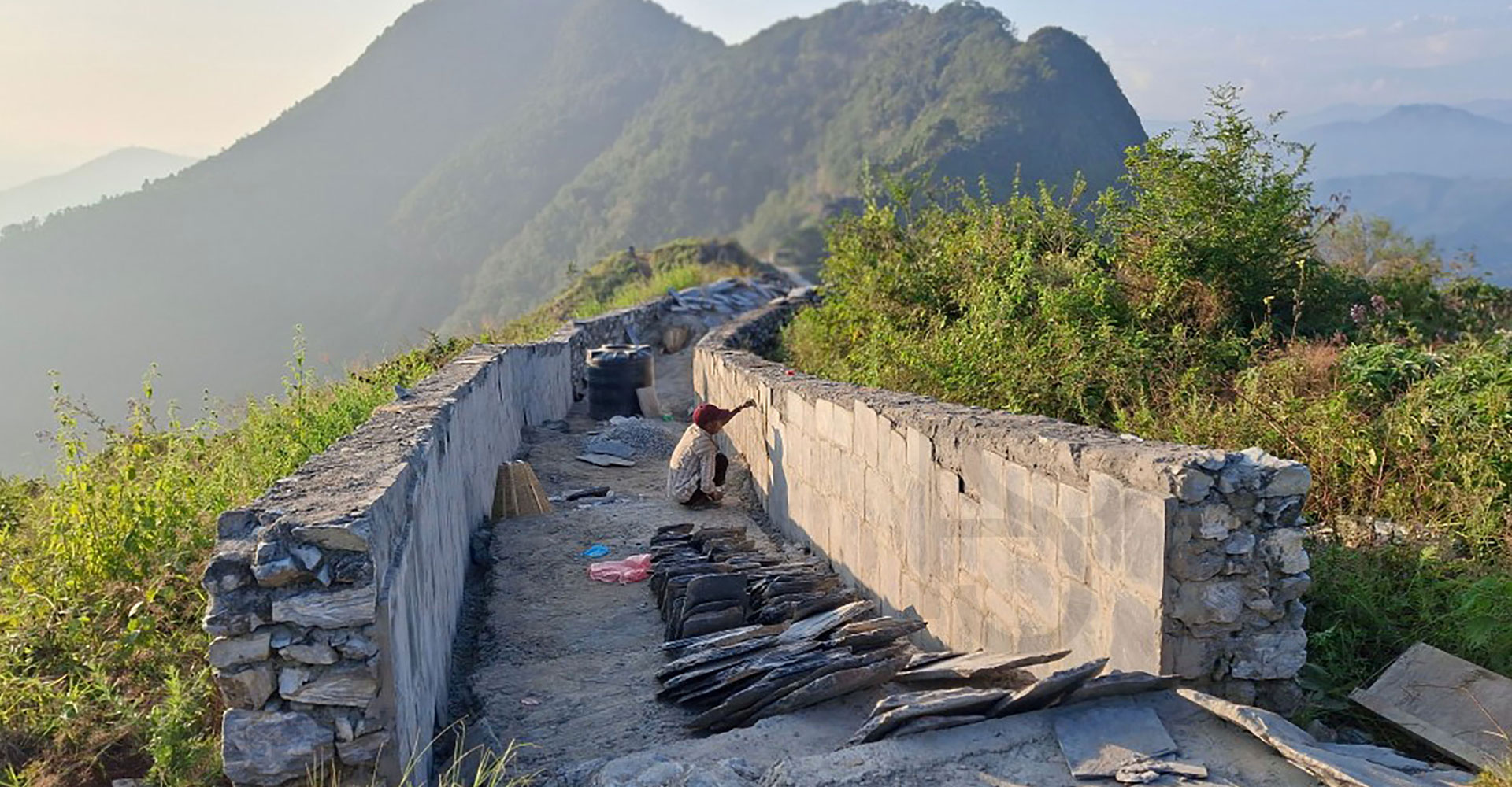 थापाका अनुसार अहिले दुवैतर्फ पर्खाल लगाउने, सिँढी बनाउने, पर्खालको दायाँबायाँ भित्तामा स्लेट ढुङ्गा छाप्नेलगायत काम भइरहेको छ । उहाँले भन्नुभयो, “केही समय यसको काममा ढिलाइ भएको थियो, गाउँपालिकाले ताकेता गरेसँगै अहिले कामको गति बढेको छ ।”
