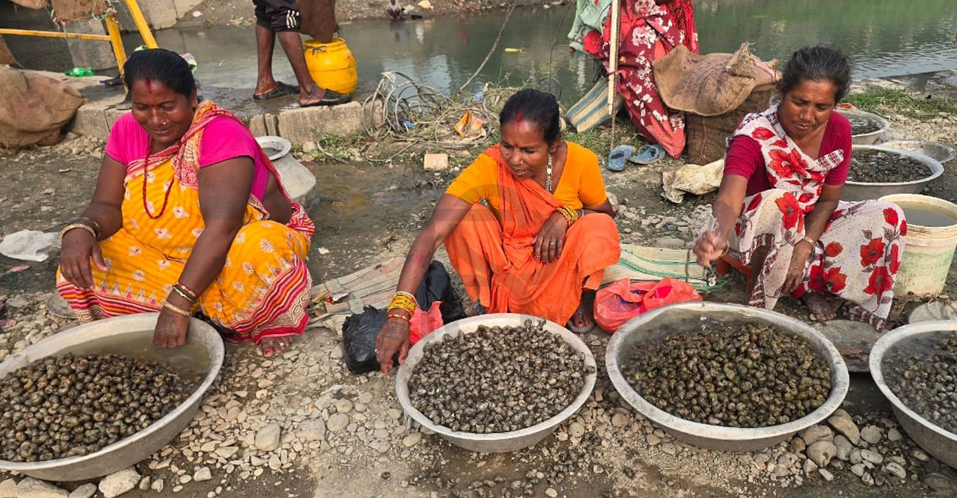 २९ कात्तिक, सुनसरी । घोँगीको व्यापार यहाँका धेरैजसो महिलाका लागि आम्दानीको आधार बनेको छ । यही व्यापारबाट आर्जेको पैसाले आफ्ना र परिवारका आवश्यकता पूरा गर्न निकै सघाउ पुगेको यसमा सङ्लग्न महिलाहरूले बताउने गरेका छन् । रामधुनी नगरपालिका–१ झुम्का हाटबजारमा घोँगीको व्यापार गर्दै आउनुभएकी वडा नं ५ की जमुना मुखियाले यसबाट राम्रो आम्दानी भइरहेको सुनाउनुभयो ।