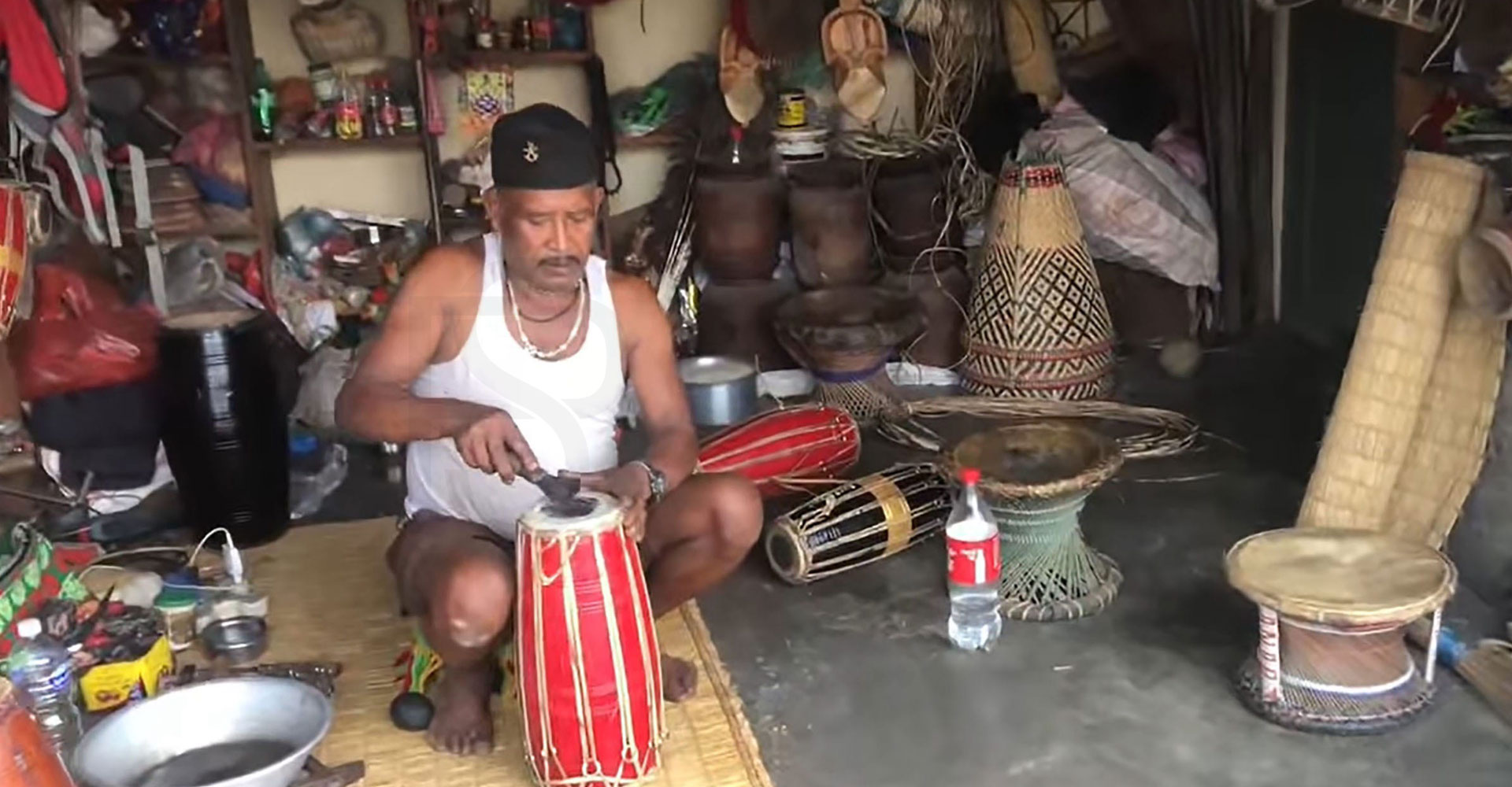 ३० कात्तिक, दमौली । तनहुँको शुक्लागण्डकी नगरपालिका–४ दुलेगौडा बजारमा माइला मादल पसलका सञ्चालक दिलबहादुर सार्की मादलमा खरी हाल्दै हुनुहुन्थ्यो । मादल बनाउने उहाँको दैनिकी नै हो । ६१ वर्षीय सार्कीले बाबुबाट सीप सिकेर यो पेसा सुरु गर्नुभएको हो । बच्चादेखि नै बुबालाई सघाउँदै जाँदा उहाँले मादल बनाउन सिक्नुभएको हो ।