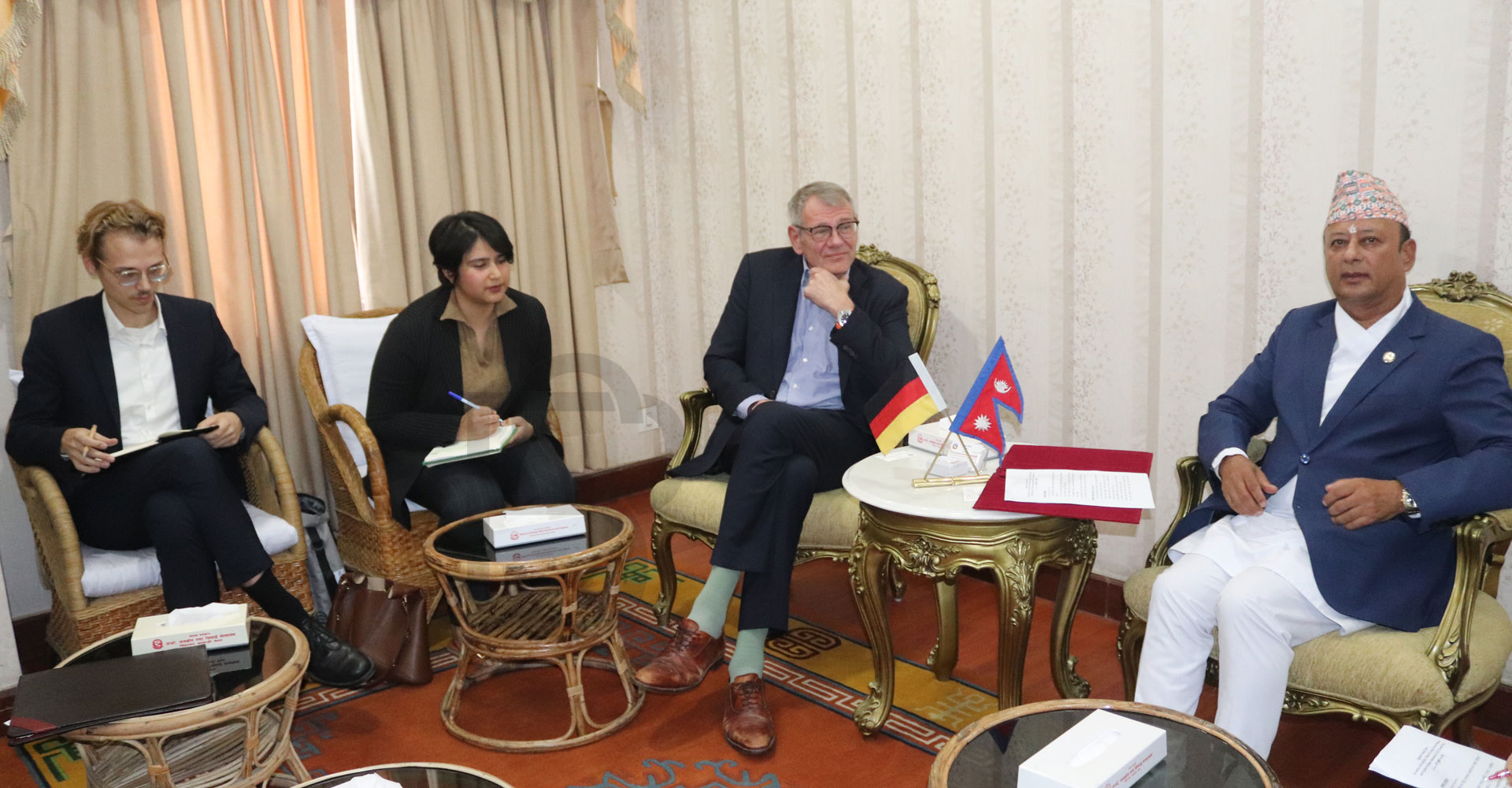 ३० कात्तिक, काठमाडौं । ऊर्जा, जलस्रोत तथा सिँचाइमन्त्री दीपक खड्का र नेपालका लागि जर्मनीका राजदूत डा थमस प्रिन्जबीच शिष्टाचार भेटवार्ता भएको छ । ऊर्जा मन्त्रालयमा आज भएको भेटमा नेपाल र जर्मनबीच ऊर्जा सहकार्यका विविध विषयमा छलफल भएको थियो ।