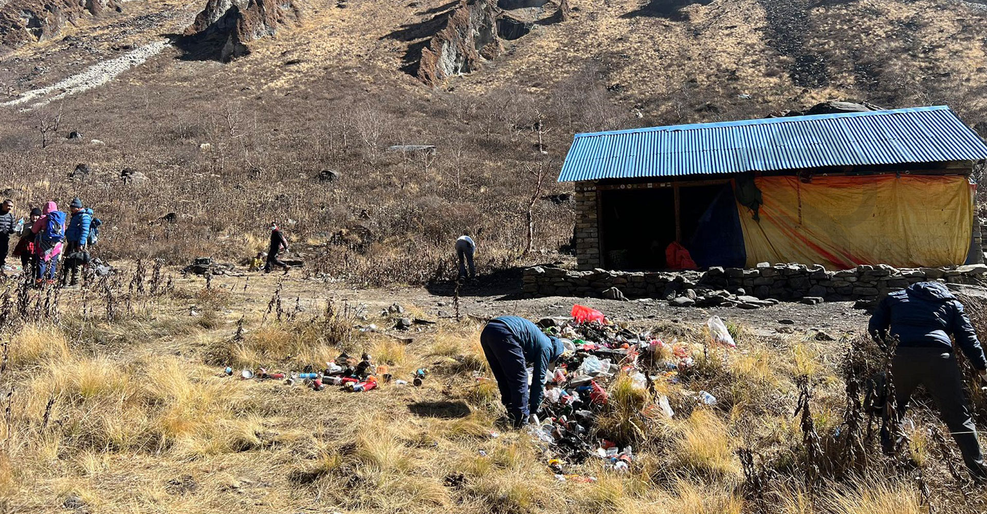 अन्नपूर्ण गाउँपालिका–५ शिखको न्यू कान्छी बाराही युवा क्लबका नौ जना र वडा नम्बर–४ गाडपारको जनगारण युवा क्लबका १२ जनाको टोलीले आधार शिविर र नारच्याङको हुुमखोलादेखि त्यहाँसम्म पुग्ने पदमार्गमा पर्यटकले फालेको फोहर व्यवस्थापन गरेका हुन् ।
