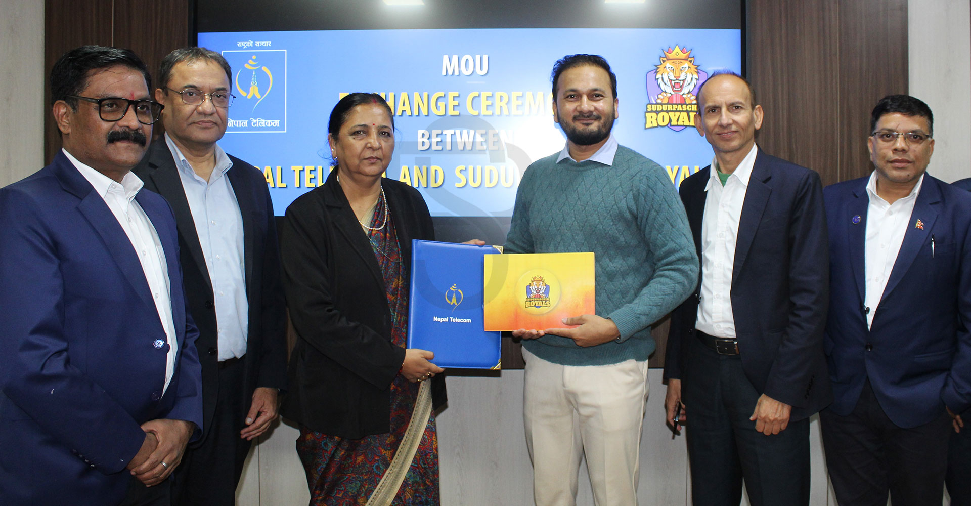 नेपाल टेलिकम, केन्द्रीय कार्यालयमा सुदूरपश्चिम रोयल्स टिमको टेलिकम पार्टनरका रुपमा नेपाल टेलिकम रहनेछ । उक्त समझदारीपत्रमा नेपाल टेलिकमका तर्फबाट कम्पनीका प्रबन्ध निर्देशक सङ्गीता पहाडी अर्याल तथा सुदूरपश्चिम रोयल्सका तर्फबाट टिमका प्रमुख कार्यकारी अधिकृत प्रकाश खड्काले हस्ताक्षर गर्नुभयो ।