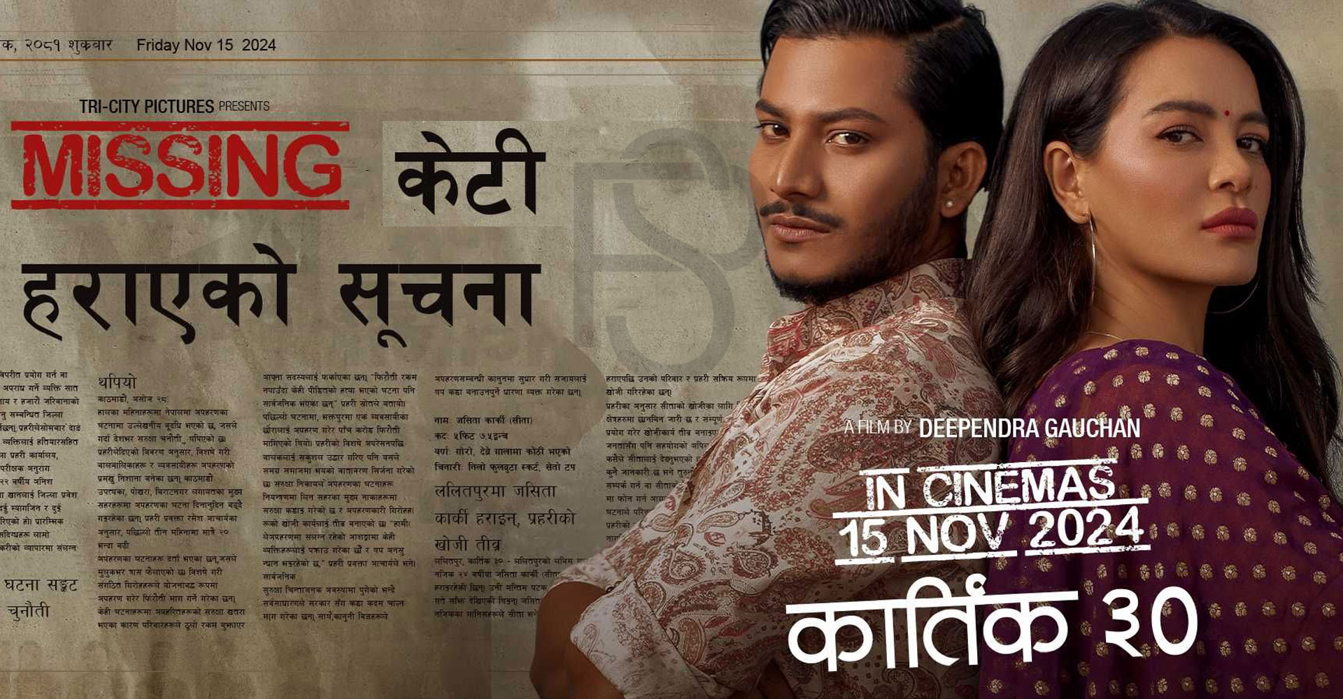 काठमाडौँ, २० मङ्सिरः फिल्म ‘केटी हराएको सूचना’को नयाँ प्रदर्शन मिति सार्वजनिक भएको छ । वितरण कम्पनी एप्पल इन्टरटेनमेन्टले माघ ११ गते (२४ जनवरी २०२५) मा फिल्म रिलिज हुने जनाएको छ ।
