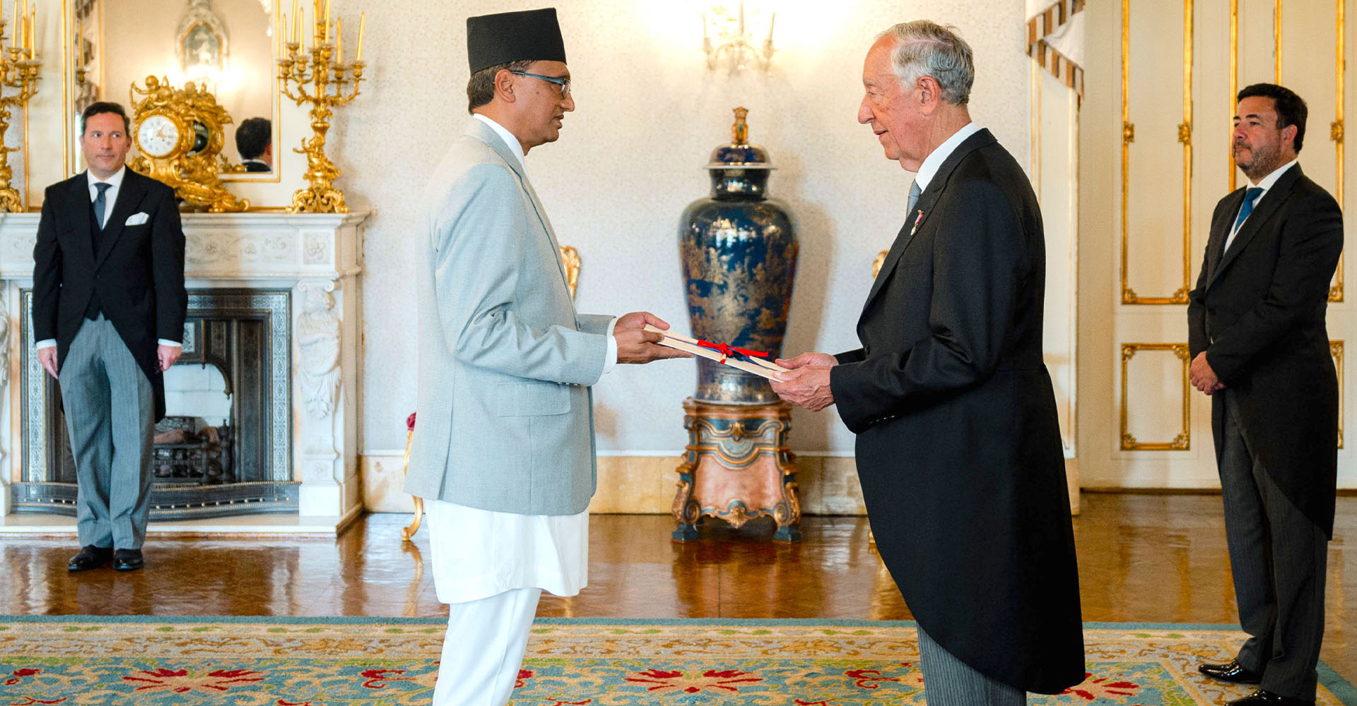 थप पढ्नुहोस्लिस्बन (पोर्चुगल), १९ चैत : पोर्चुगलका लागि नवनियुक्त नेपाली राजदूत प्रकाशमणि पौडेलले राष्ट्रपति मार्सेलो रेबेलो डी सौसासमक्ष ओहोदाको प्रमाणपत्र पेस