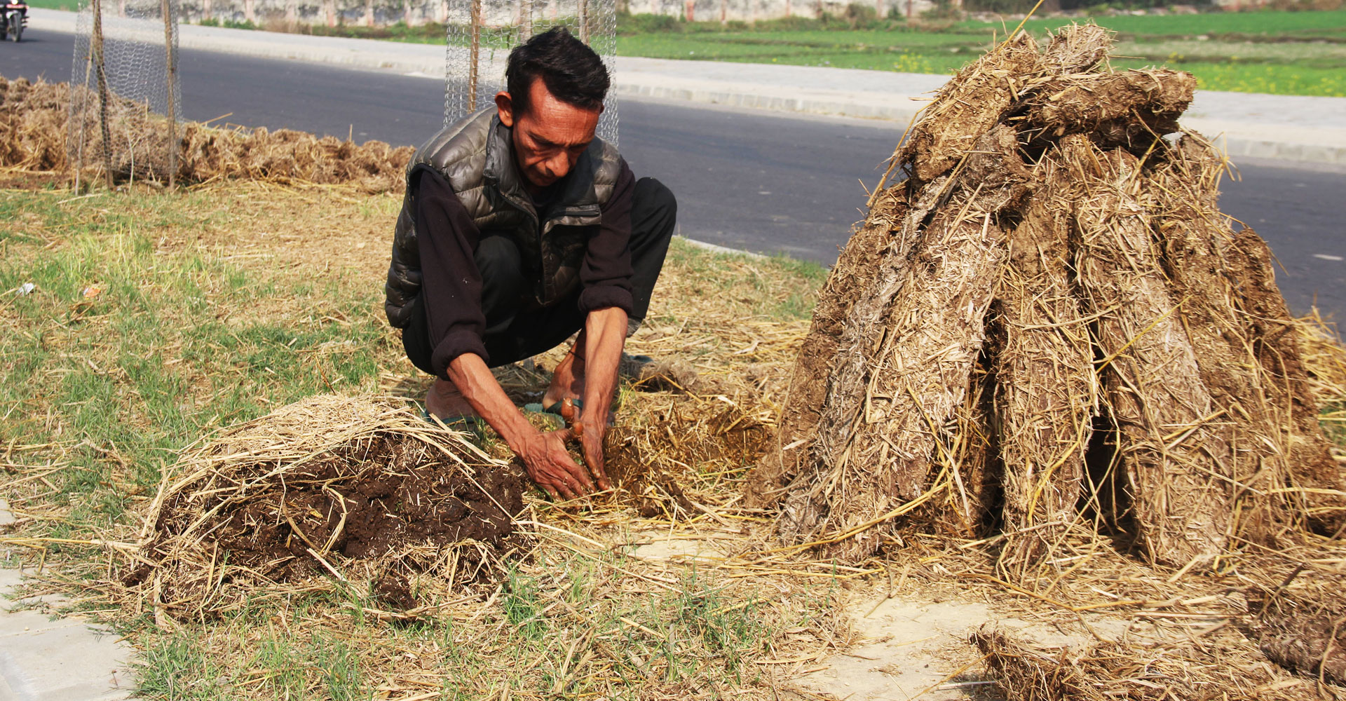 बाँकेको जानकी गाउँपालिका-४ खाजुरानहरस्थित खटिक टोलका स्थानीय मनीराम खटिकले आगो बाल्नको लागि पराल र गोबर मिसाएर गुइँठा बनाउँदै