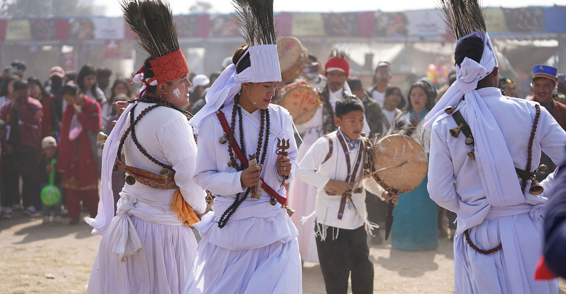 राष्ट्रिय सोनाम ल्होसार मूल समारोह समितिले बिहीबार टुँडिखेलमा आयोजना गरेको सोनाम ल्होसार कार्यक्रममा परम्परागत पोशाकमा सजिएर सहभागी हुँदै तामाङ समुदाय