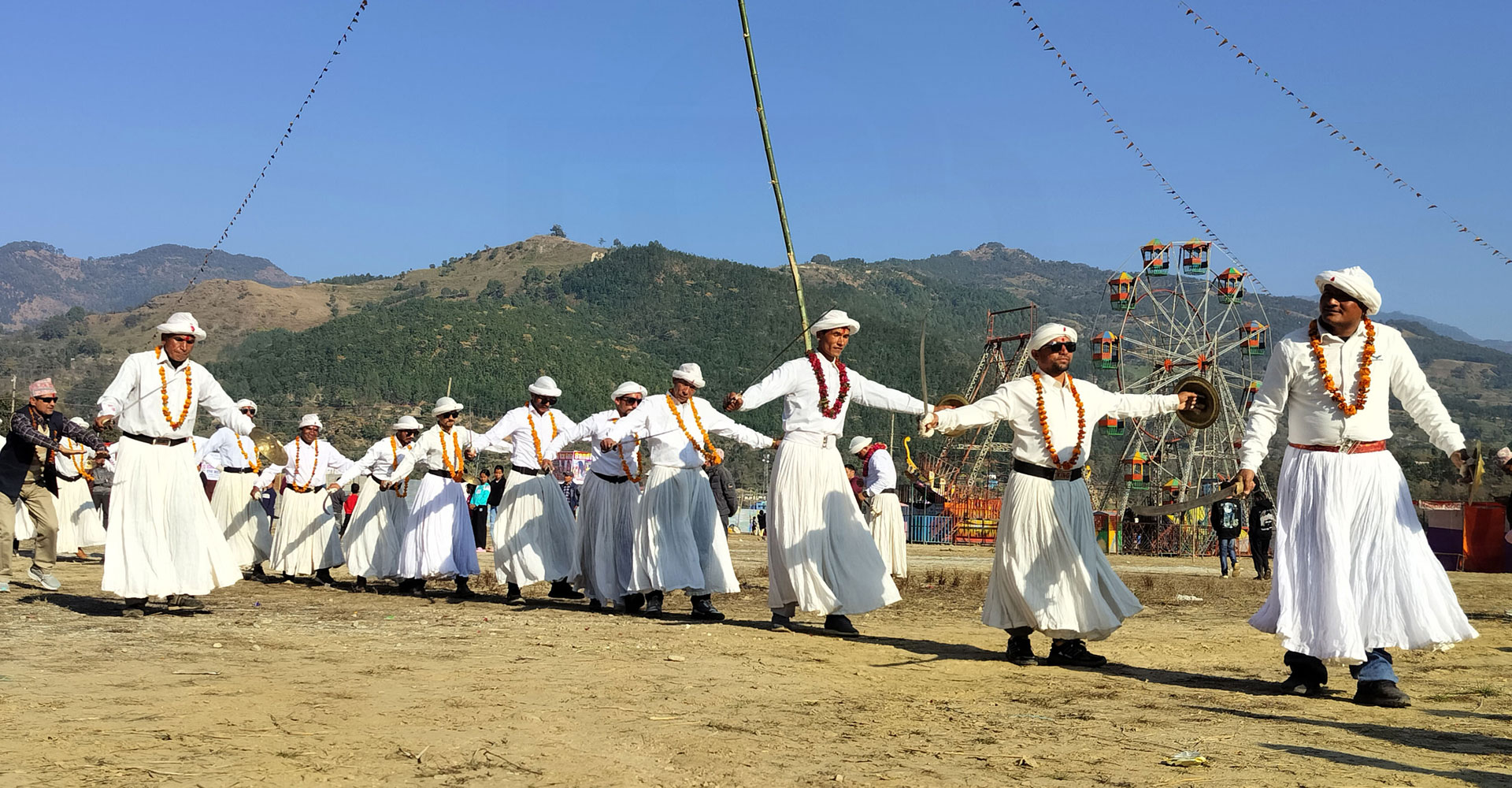 अछामको साफेबगरमा सञ्चालित सातौँ साफेबगर महोत्सवमा डोटीको पूर्विचौकी गाउँपालिका सानागाउँका पुरुषहरु भुवानाच प्रदर्शन गर्दै