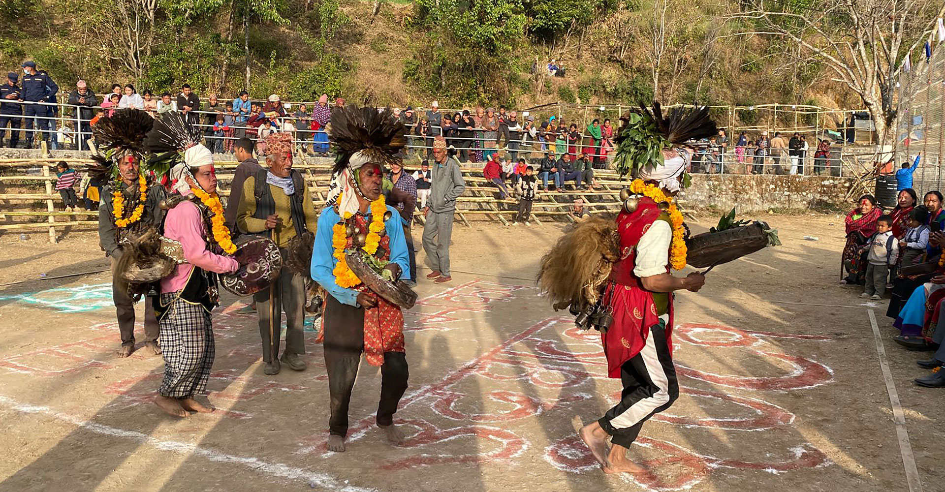 रुकुम पश्चिमको मुसिकोट नगरपालिका–७ साँखमा आयोजित पापिनी मेलामा झाँक्री नाच प्रस्तुत गर्दै झाँक्रीहरु । यहाँ हरेक वर्ष ठूलो मेला लाग्ने गर्दछ