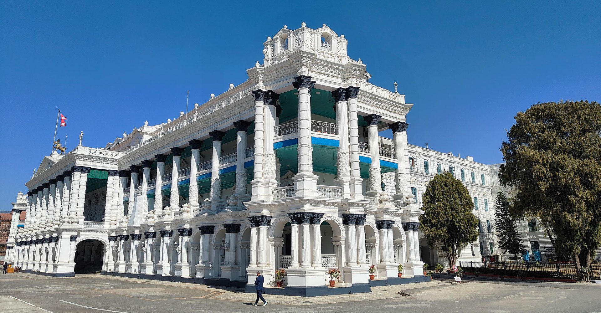 सिंहदरबारस्थित प्रधानमन्त्री तथा मन्त्रिपरिषद्को कार्यालय भवन। विसंं २०७२ वैशाख १२ गतेको भूकम्पले क्षति भएपछि पुनः निर्माण गरेर कार्यालय सञ्चालनमा ल्याइसकिएको छ