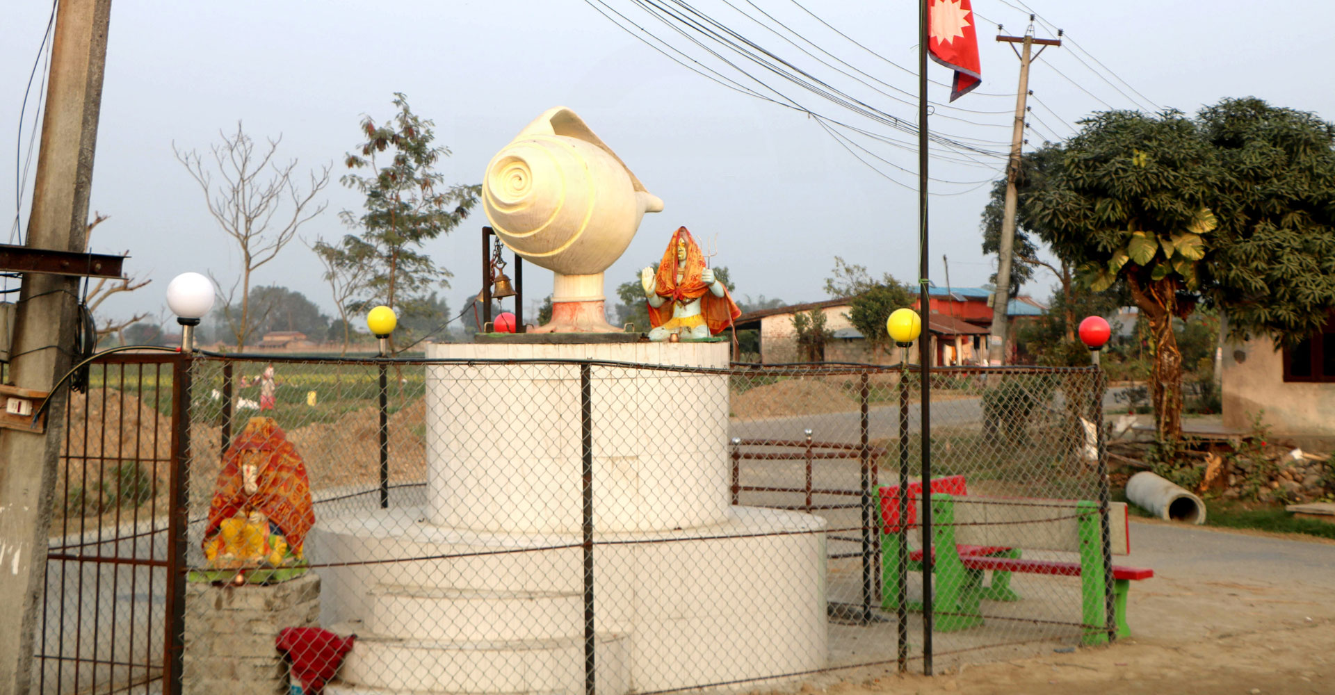 चितवनको खैरहनी नगरपालिका–१० खरखुट्टेस्थित चोकमा राखिएको शङ्खलगायत भगवानको प्रतिमा । शङ्खको प्रतिमा राखेपछि यस चोकको नाम शङखचोक भएको छ