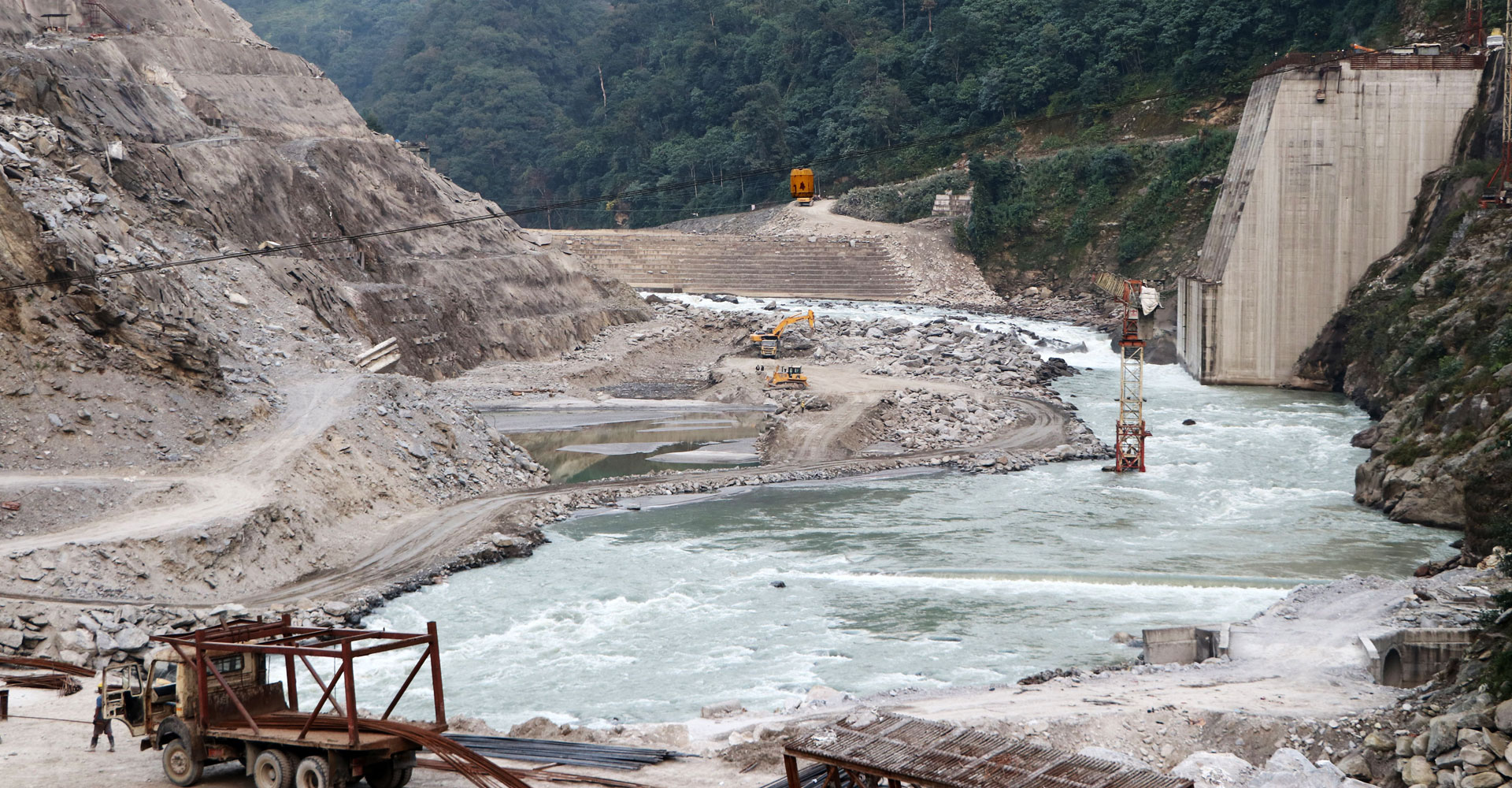 सङ्खुवासभाको मकालु गाउँपालिका–५ स्थित फ्याक्सिन्दा दोभानमा निमार्णाधीन नौ सय मेगावाटको अरुण तेस्रो आयोजनाको ड्याम साइड