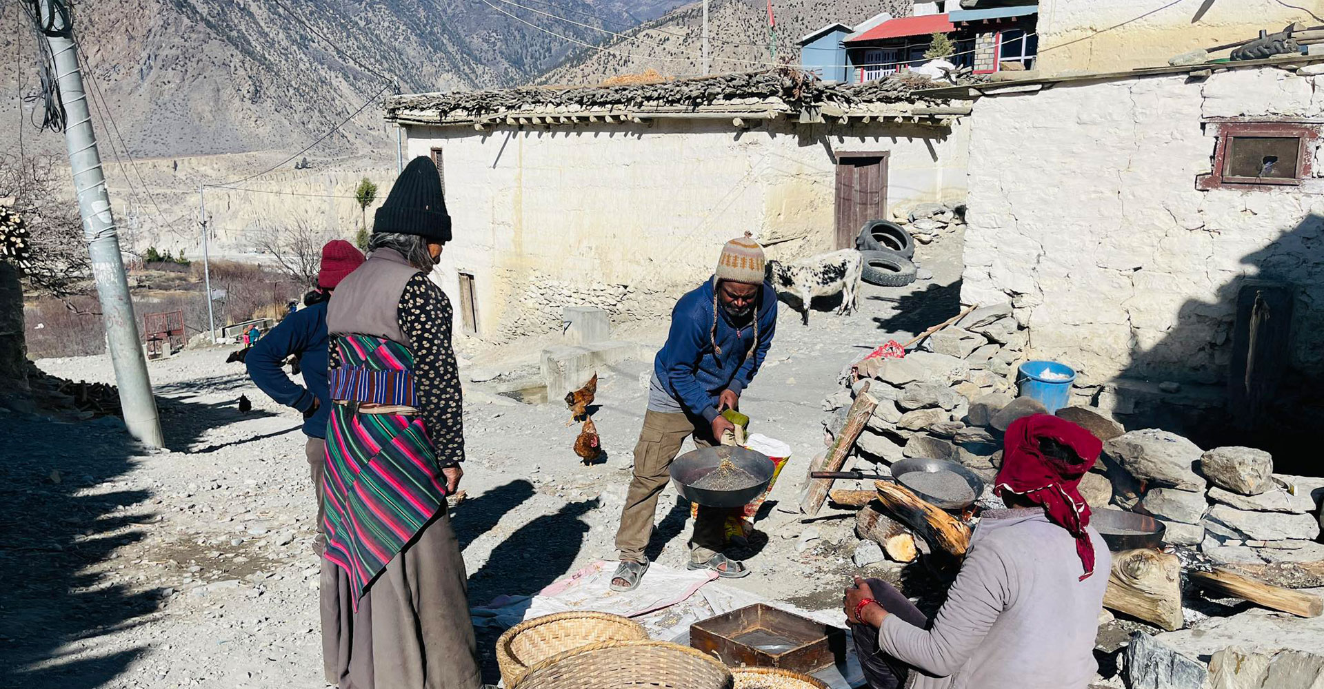 हिमालीपारिको जिल्ला मुस्ताङको घरपझोङ–५ ठिनी गाउँमा कृषकले उत्पादन गरेको रैथाने बाली उवालाई आगोमा भुट्दै स्थानीय बासिन्दा । मुस्ताङको रैथाने बाली उवालाई सातु र घरेलु मदिरा बनाउनका लागि प्रयोग गरिन्छ । विशेषगरी सातु बिरामीलाई सुप ‘खु’ बनाएर खुवाउँदा चाँडो निको हुने जनविश्वास छ