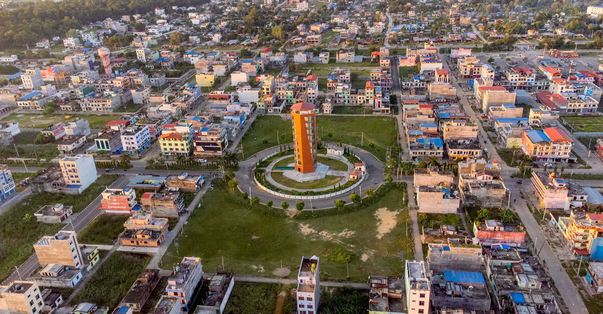 बाँकेको कोहलपुर नगरपालिका-११ गोलपार्कस्थित ‘भ्यूटावर’ र आसपासको क्षेत्र । लिफ्टसहितको सुविधा सम्पन्न यो भ्यूटावर दश तलाको छ