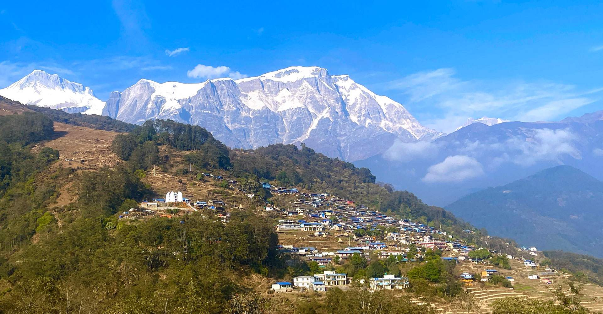 मध्यपहाडी लोकमार्गको पोखराखण्डस्थित पोखरा महानगरपालिका–२५ हेमजाबाट देखिएको माछापुच्छ्रेलगायत हिमश्रृङ्खला