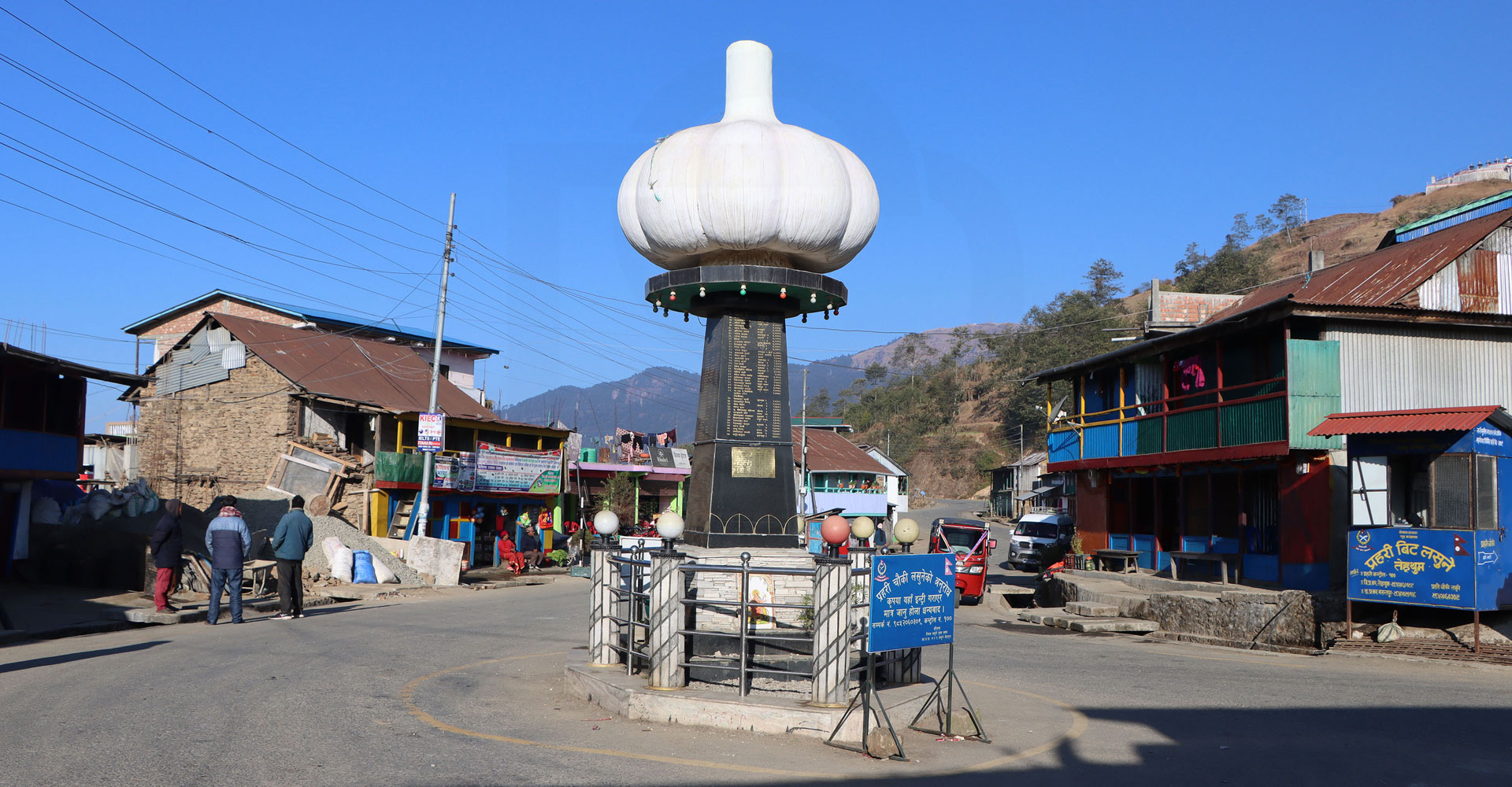 मध्यपहाडी राजमार्ग अन्तर्गत सङ्खुवासभा र तेह्रथुमको सिमाना लालिगुराँस नगरपालिका -१ लसुनेमा निर्माण गरिएको लसुन स्तम्भ