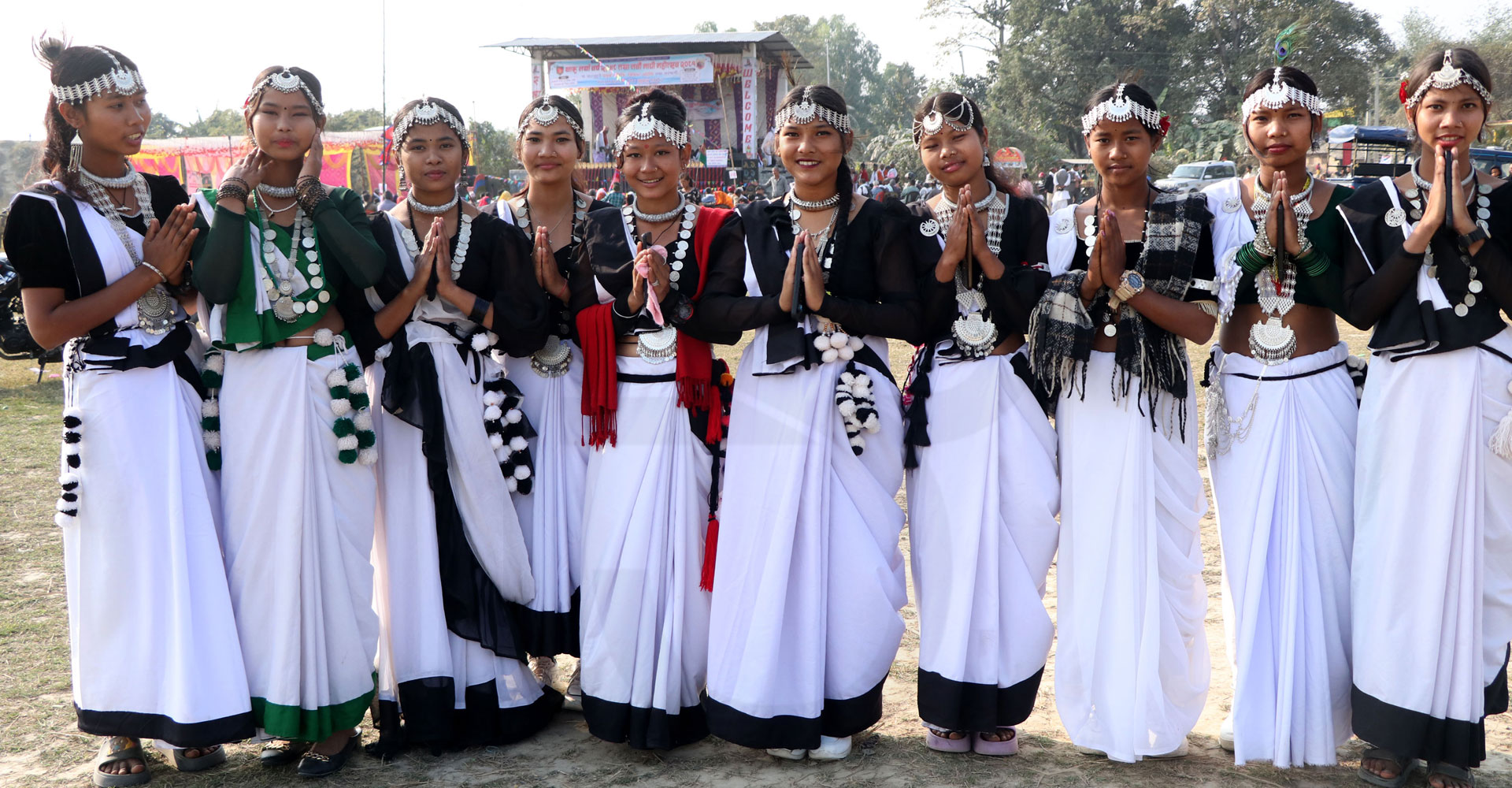 सर्लाहीको लालबन्दी नगरपालिका–३, सिस्वाजब्दी भैरवपुर खेलमैदानमा सोमबार थारू नयाँ वर्ष २६४८ तथा नवौँ माघी महोत्सवको अवसरमा आयोजित कार्यक्रममा आफ्नो जातीय पोसाकमा सजिएका थारू युवती