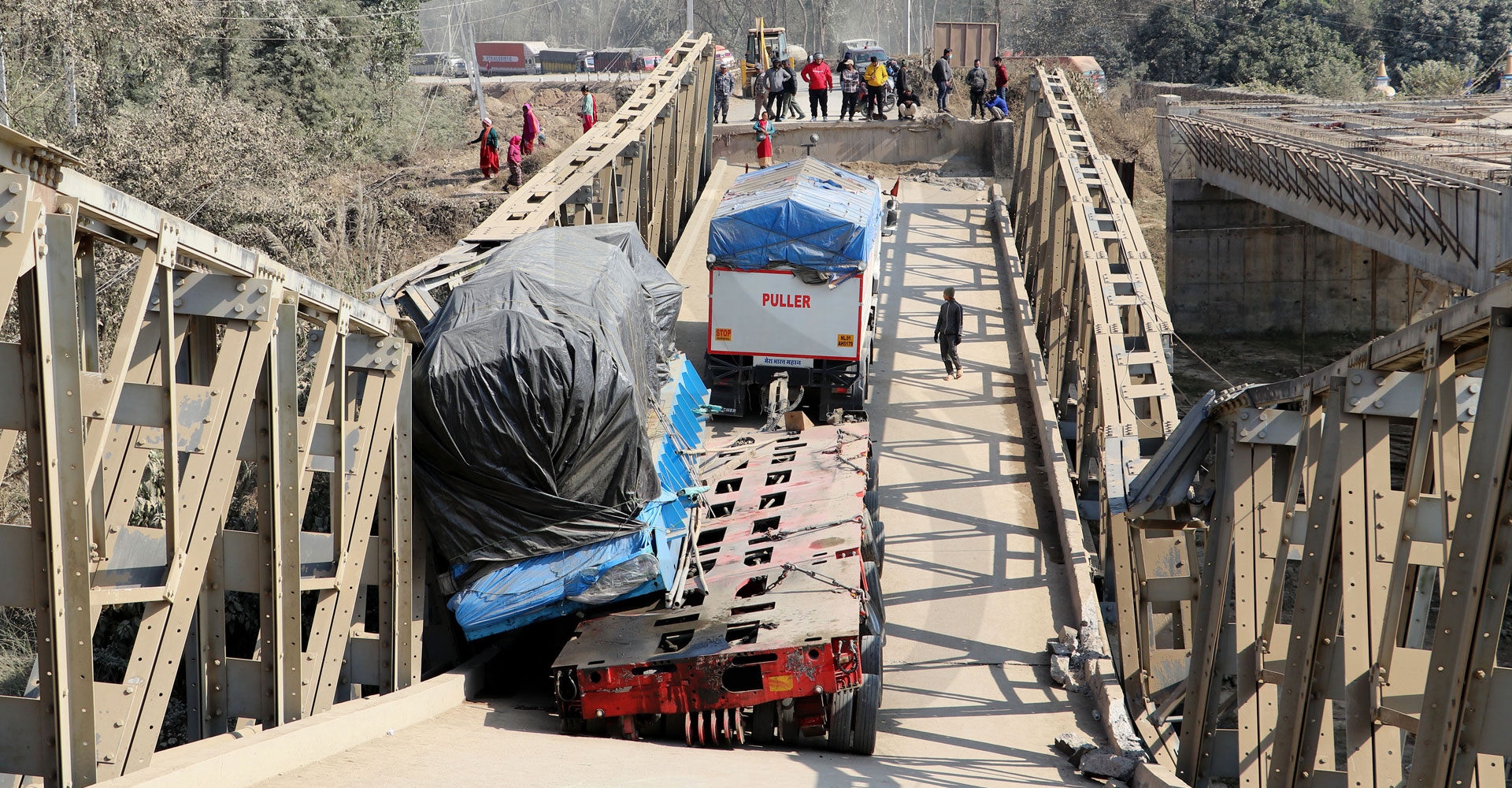 पूर्व–पश्चिम राजमार्गअन्तर्गत नवलपरासी (बर्दघाट सुस्तापूर्व)को विनयी त्रिवेणी–१ दुम्कीवासमा शुक्रबार साँझ भाँचिएको पुल । पुल भाँचिएपछि अहिले वैकल्पिक मार्गबाट यातायात सञ्चालन गरिएको छ